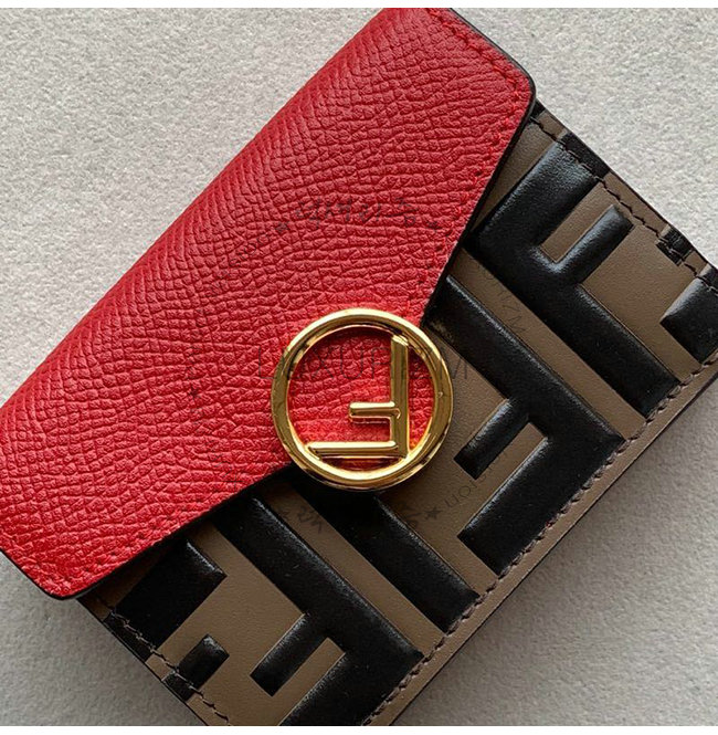 F is Fendi 컴팩트 트리폴드 지갑. 넓은 내부 지폐 수납 공간.