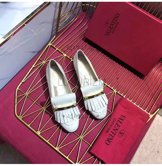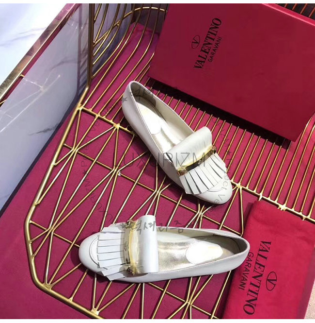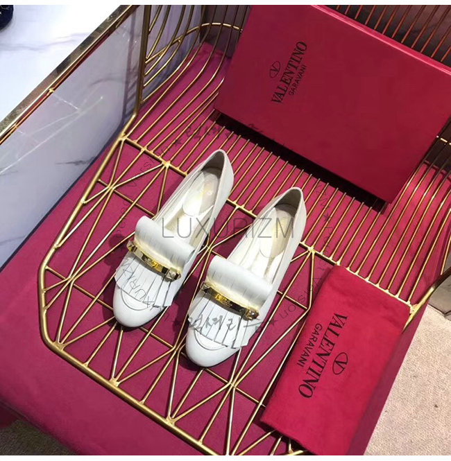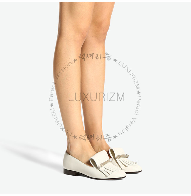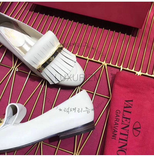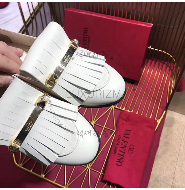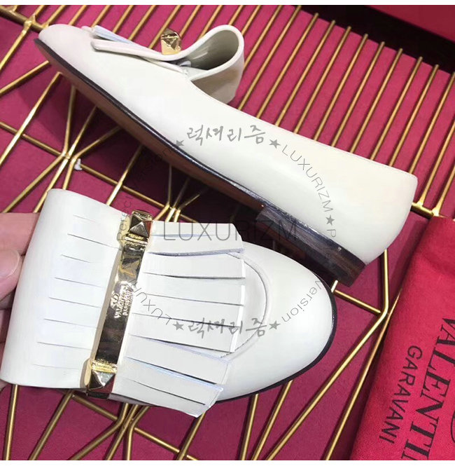 VALENTINO-RW2S0K84 발렌티노 화이트 송아지 가죽 프린지 디테일 로퍼