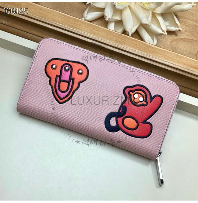 [스페셜오더]LOUIS VUITTON-M63377 루이비통 핑크 에삐 레더 패치 디테일 지피 월릿