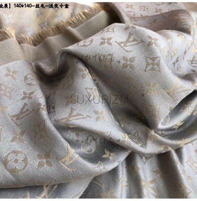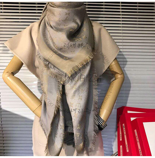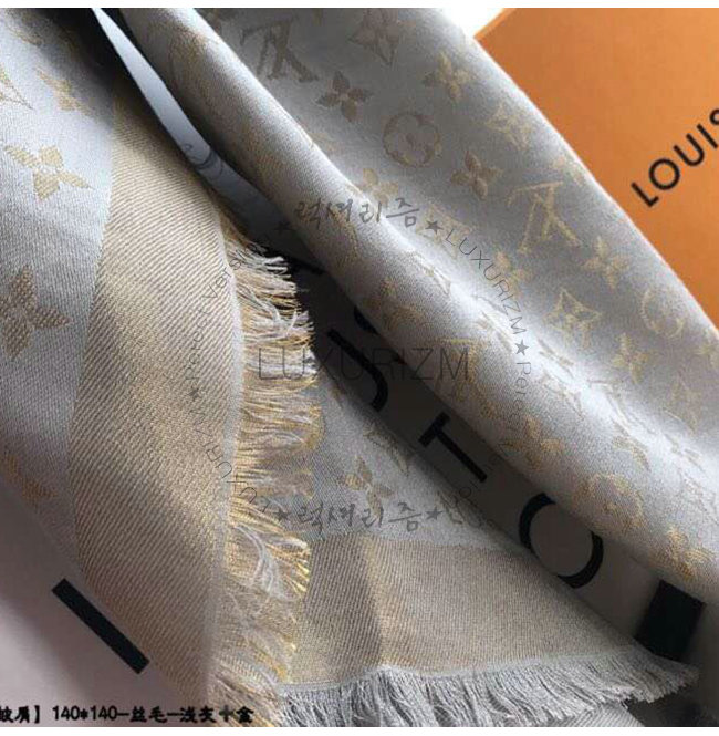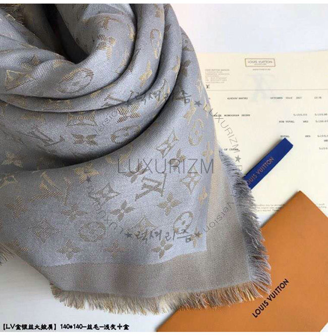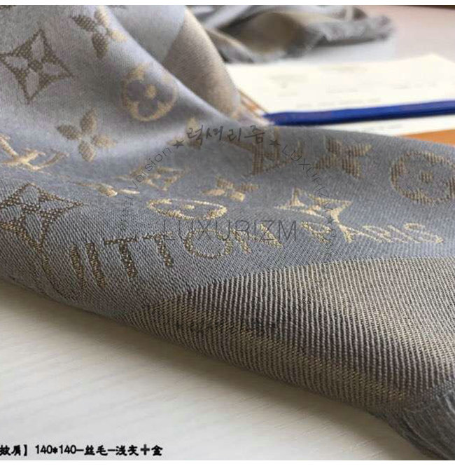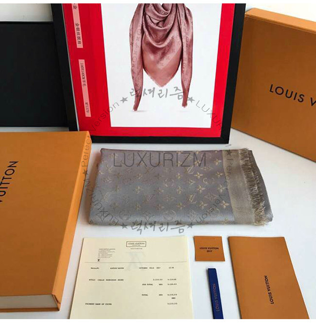 LOUIS VUITTON-M75120 루이비통 그레이 실크 모노그램 샤인 숄