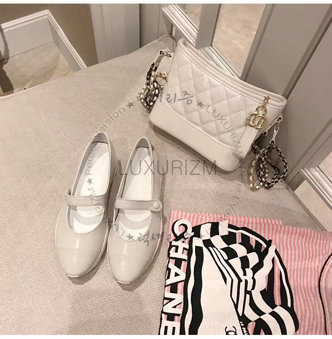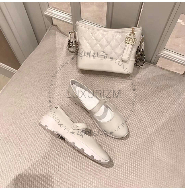 CHANEL-G34464 샤넬 화이트 카프스킨 메리제인