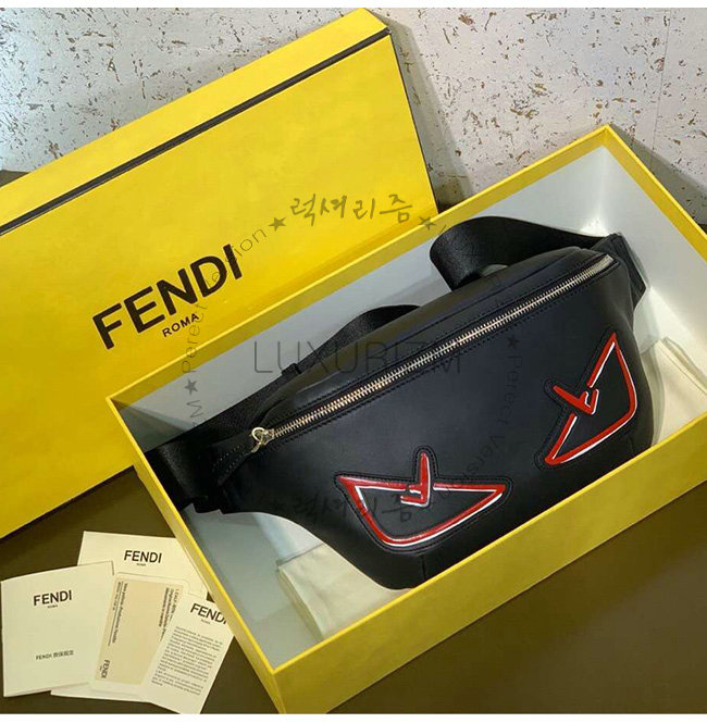 [스페셜오더]FENDI-7VA434 펜디 블랙 송아지 가죽 백 버그 아이 장식 벨트백