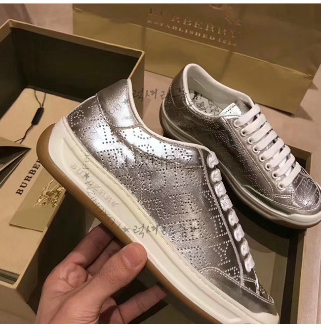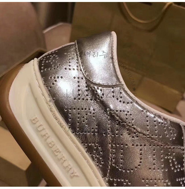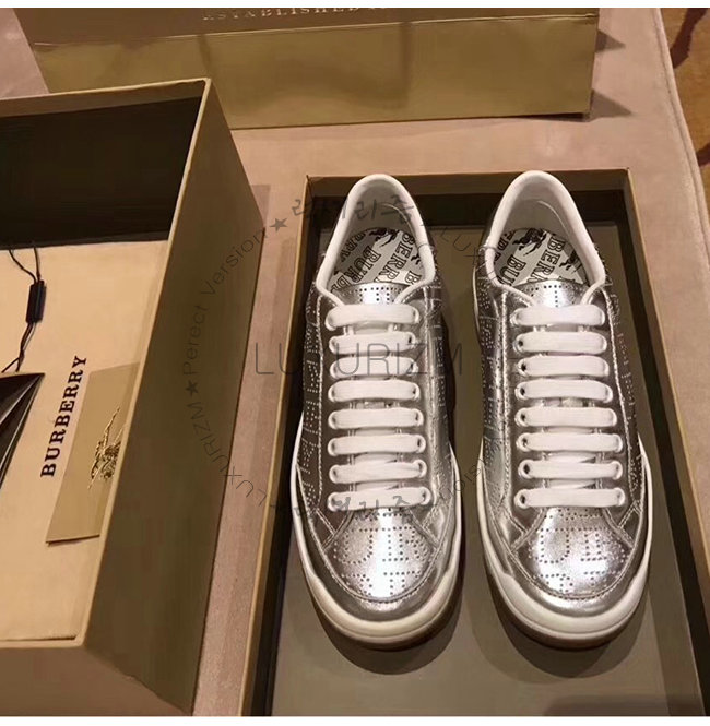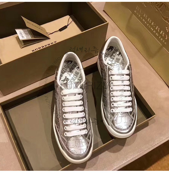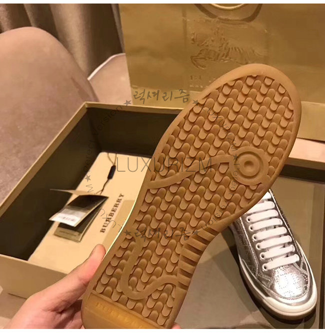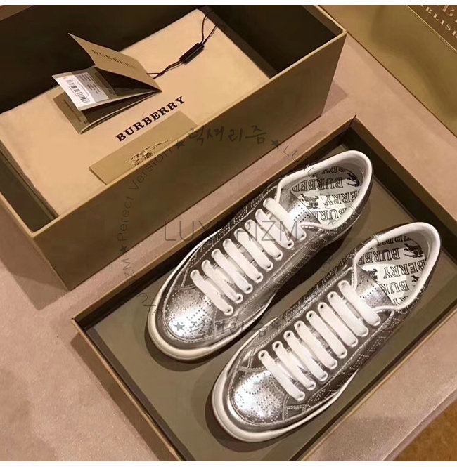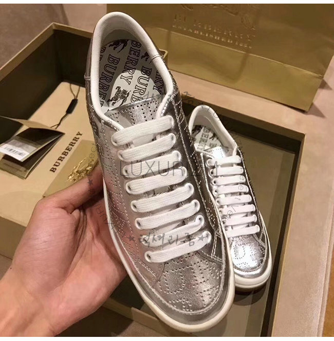 BURBERRY-80054351 버버리 실버 송아지 가죽 퍼포레이트 로고 메탈릭 스니커즈(남여공용)