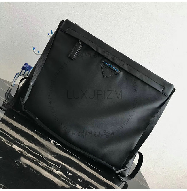 [스페셜오더]PRADA-2VH057 프라다 블랙 송아지 가죽 외부 트라이앵글 로고 라지 숄더백