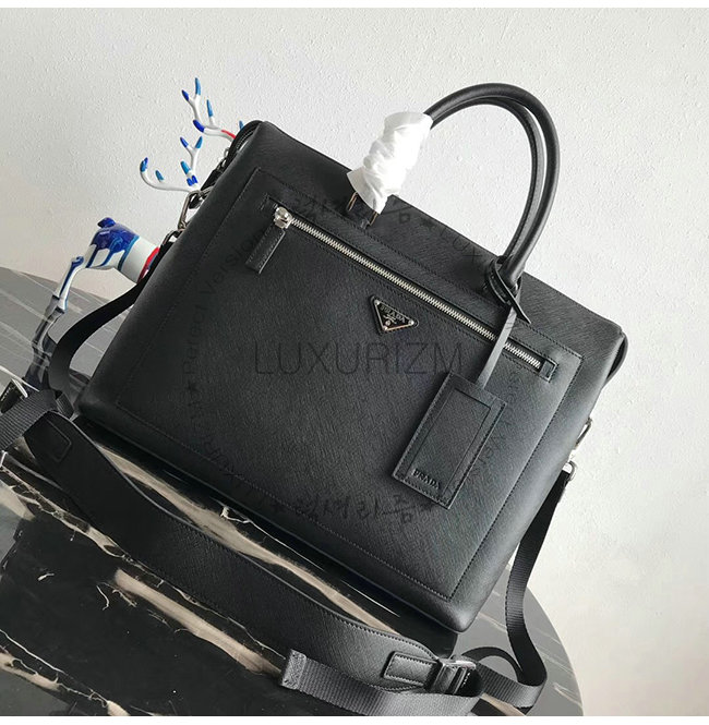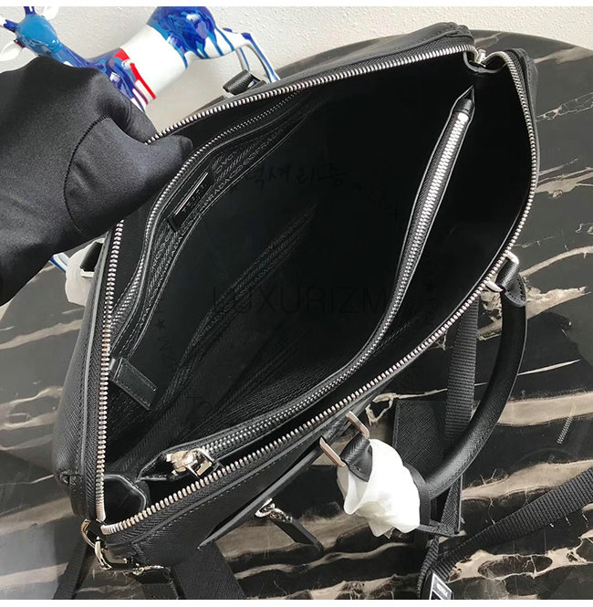 [스페셜오더]PRADA-2VG044 프라다 블랙 사피아노 가죽 브리프케이스