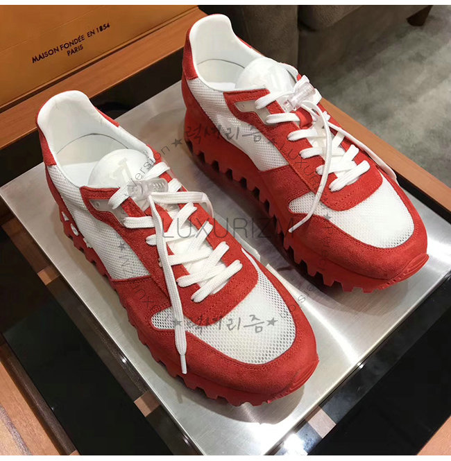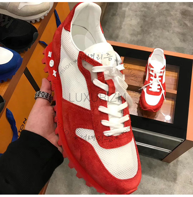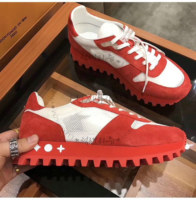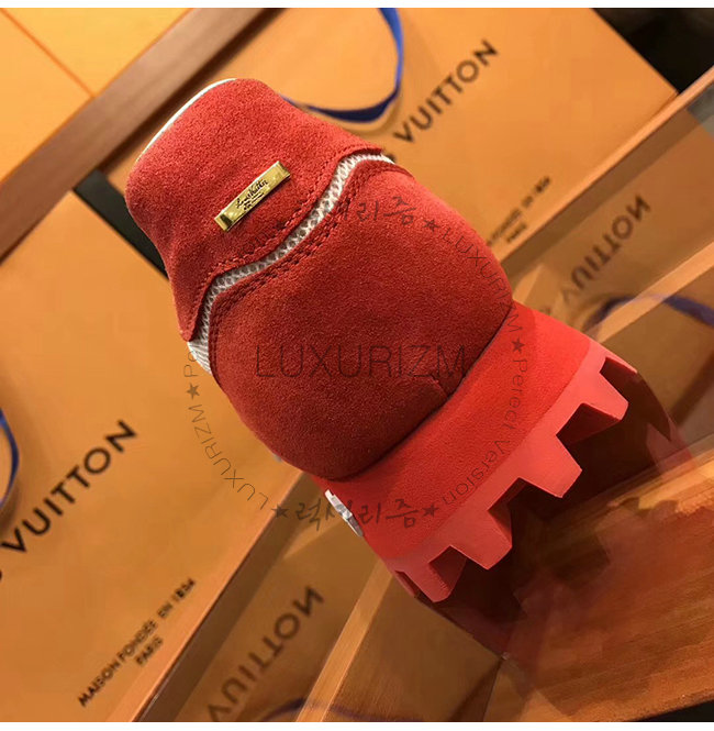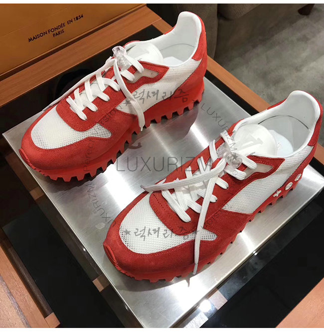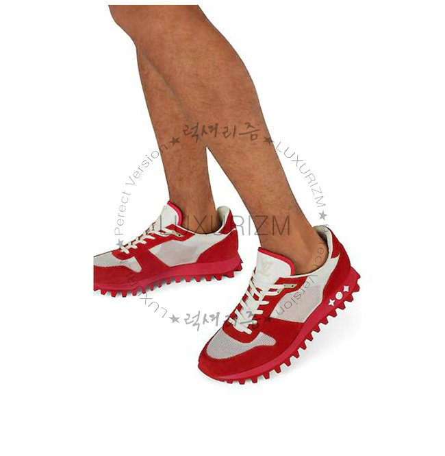 LOUIS VUITTON-1A525Y 루이비통 레드 스웨이드 송아지 가죽 LV 러너 스니커즈