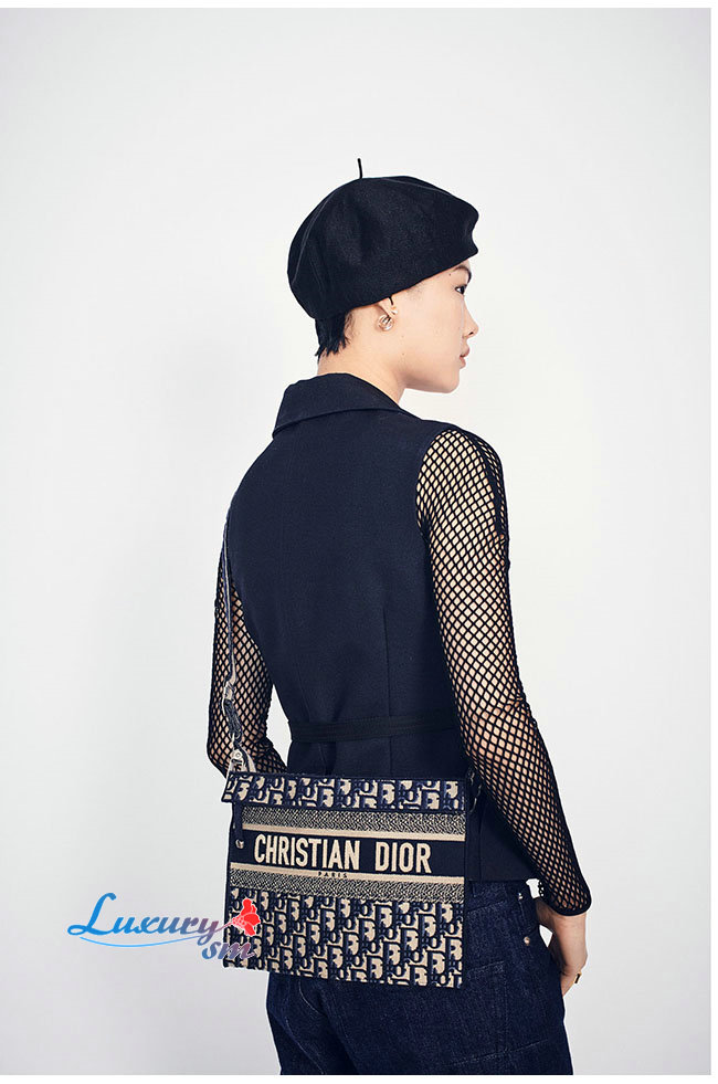 디올 오블리크 모티브 자수 장식 패브릭 클러치 백.