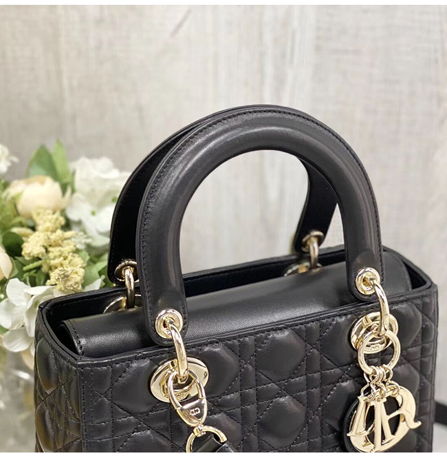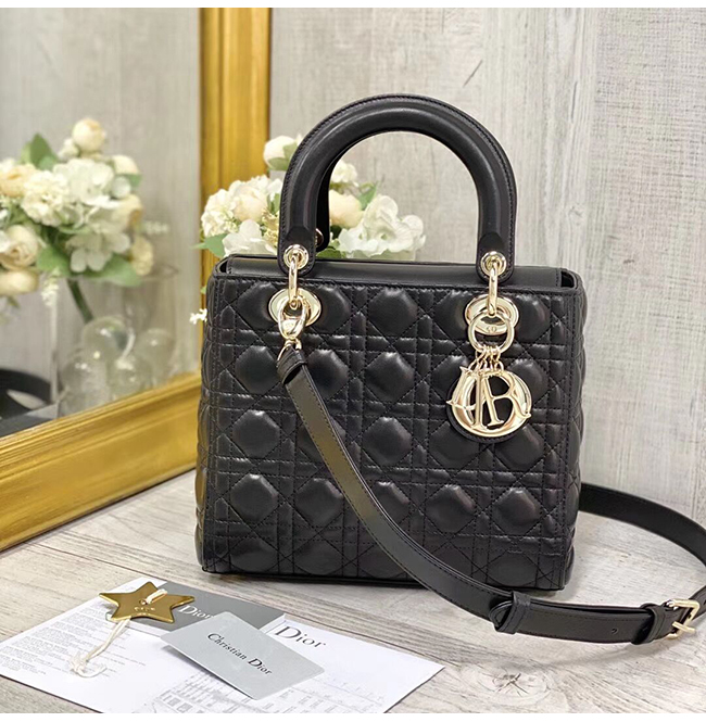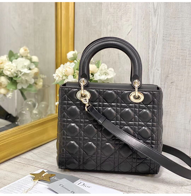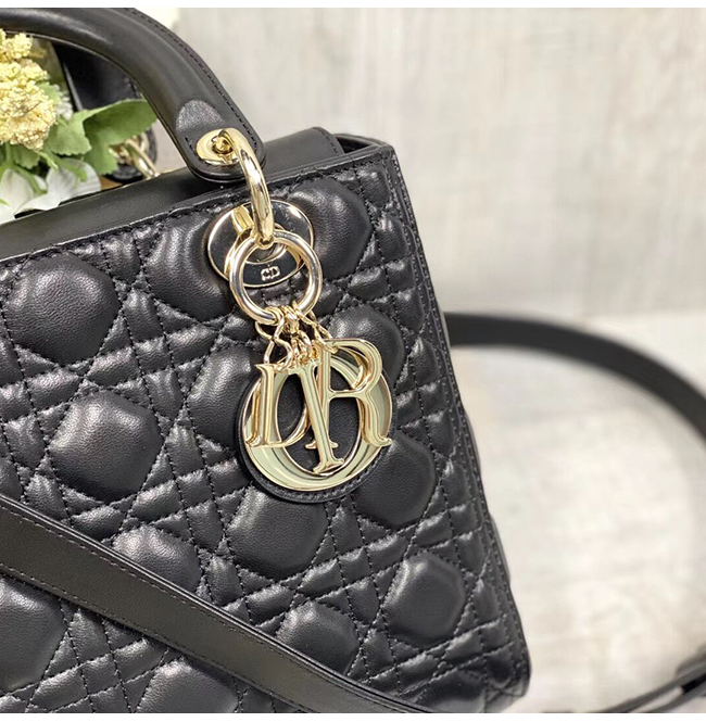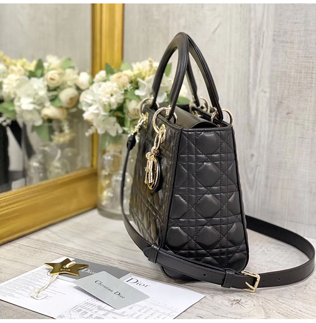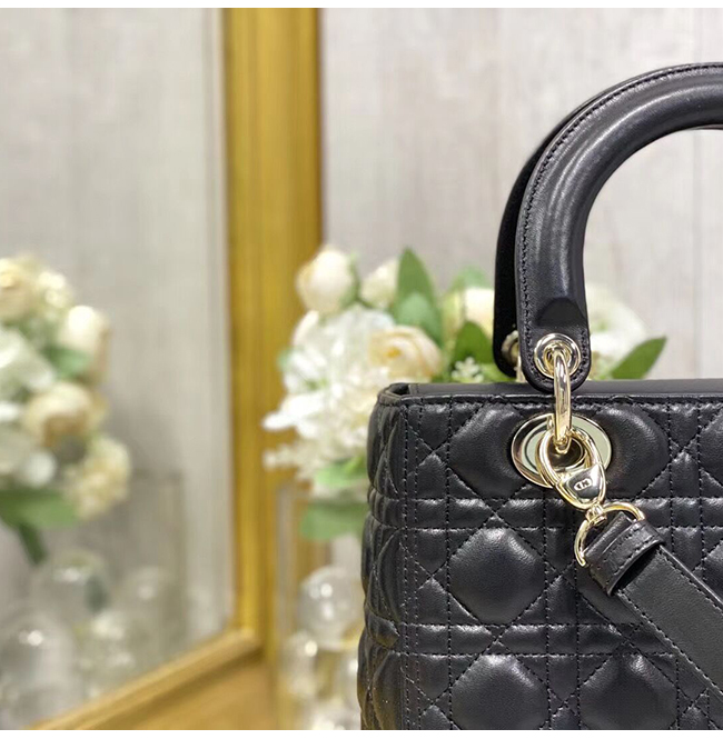[스페셜오더]DIOR-CAL44550 크리스찬 디올 블랙 양가죽 미듐 LADY DIOR 토트백