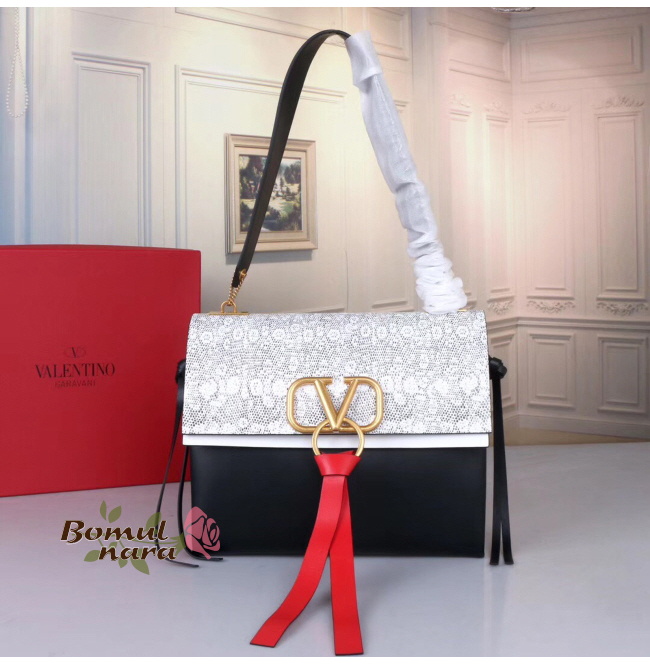 [스페셜오더]VALENTINO-RW0B0E 발렌티노 리자드 가죽 미디엄 V링 숄더백