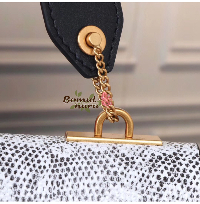 색상 대비를 이루는 디테일을 가미한 리자드 가죽 소재의
