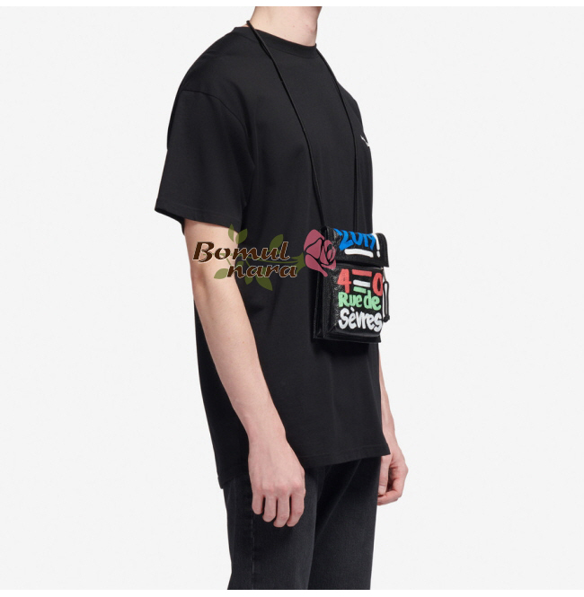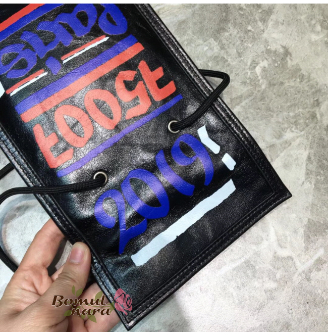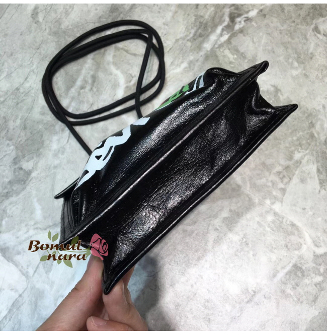BALENCIAGA-532298 발렌시아가 블랙 스몰 웨이브 로고 자수 파우치 스트랩 백