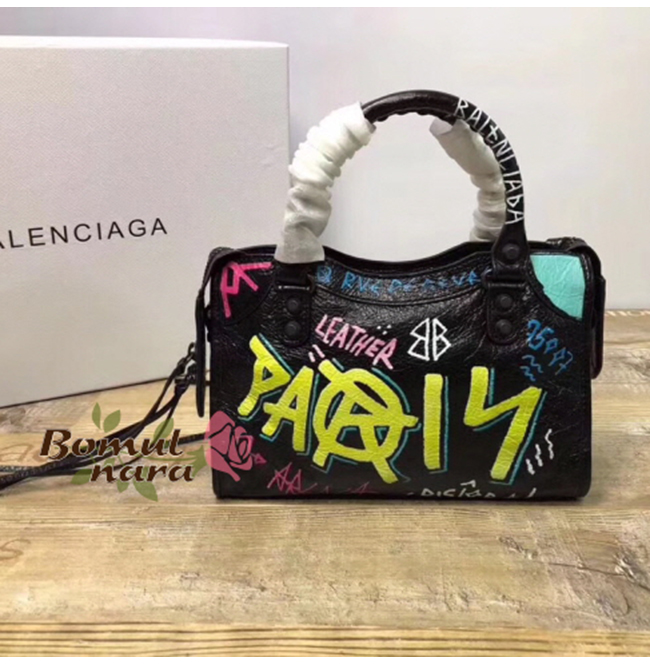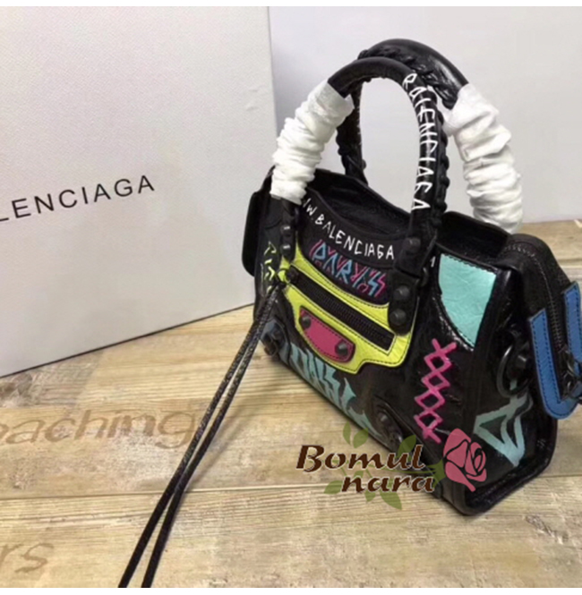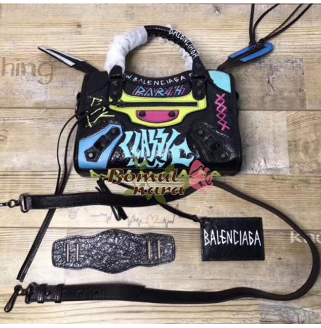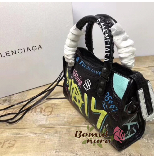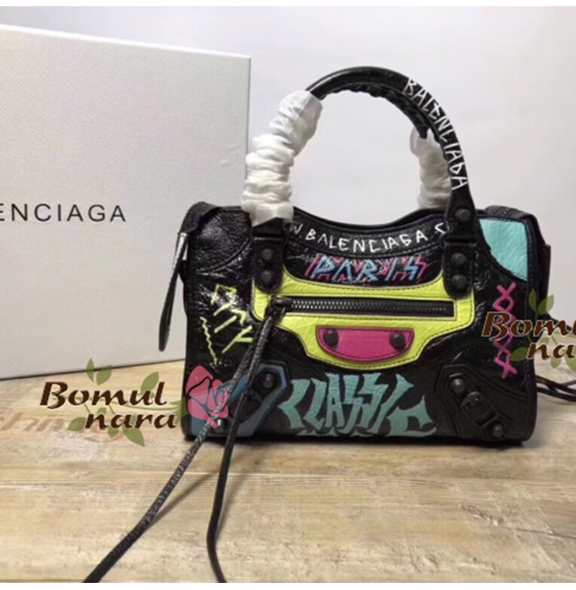 [스페셜오더]BALENCIAGA-300295 발렌시아가 블랙 스몰 그래피티 클래식 시티 미니백