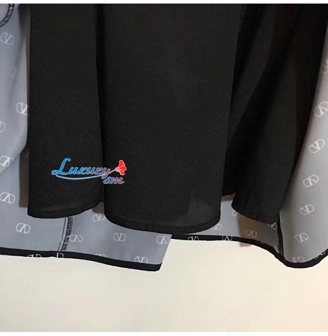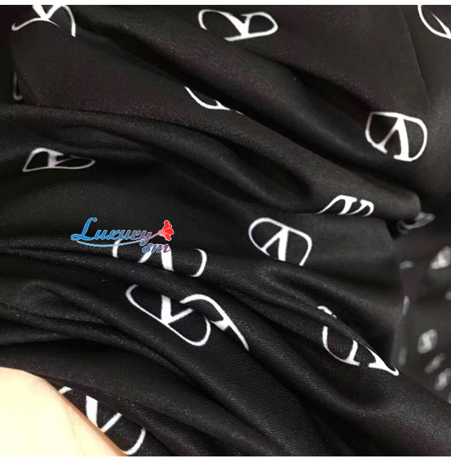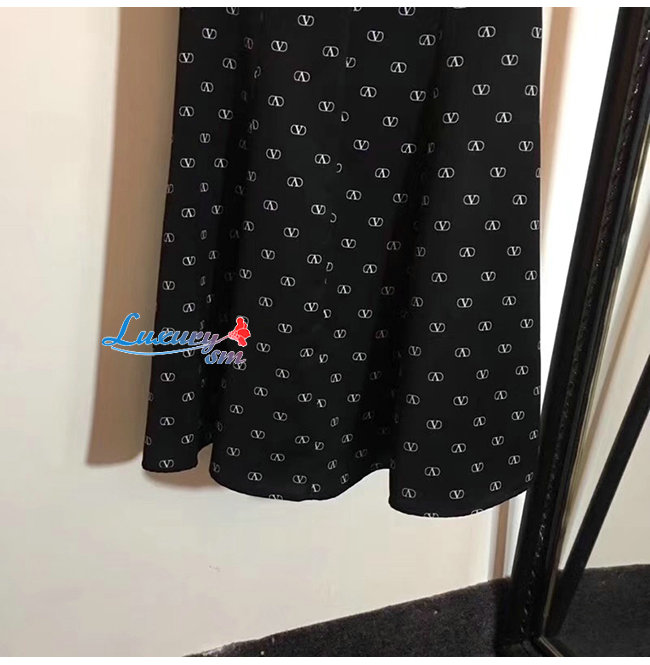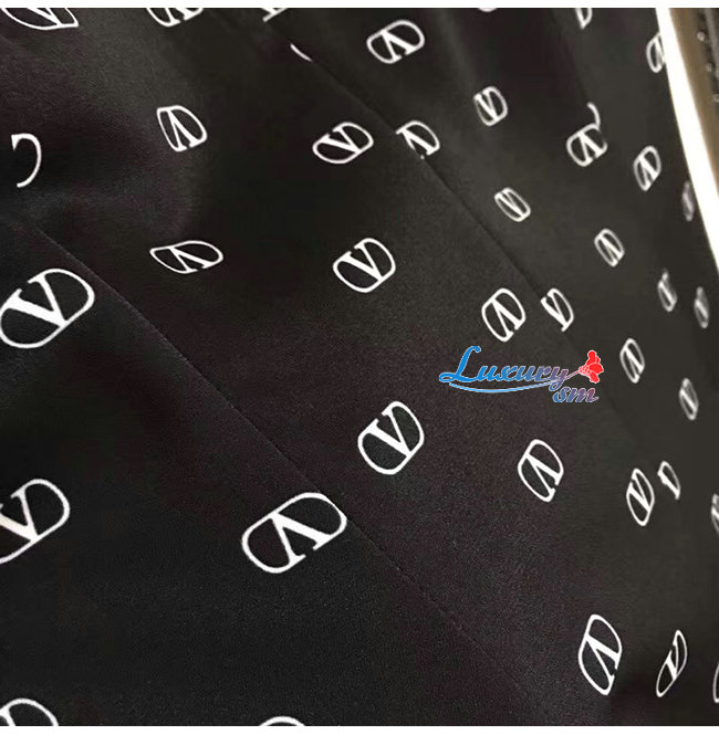 미니VLOGO 프린트를 가미한 크레이프 쿠튀르소재의 드레스.
