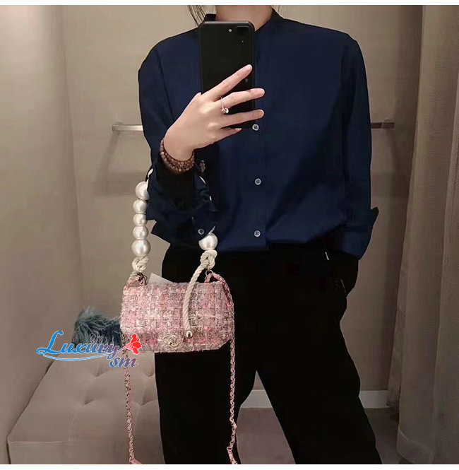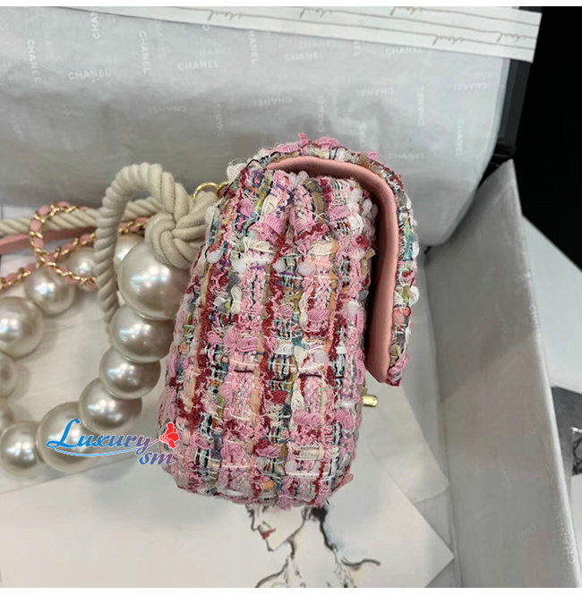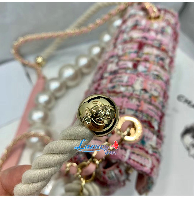 [스페셜오더]CHANEL-AS0593 샤넬 핑크 트위드 이미테이션 펄 골드메탈 플랩백