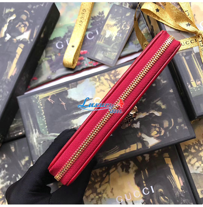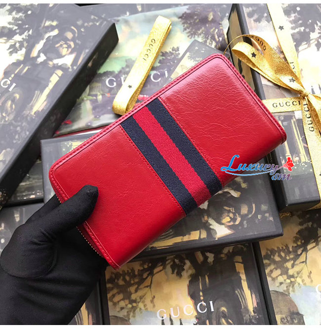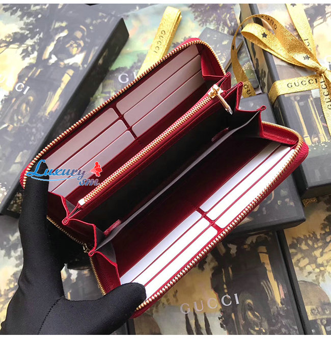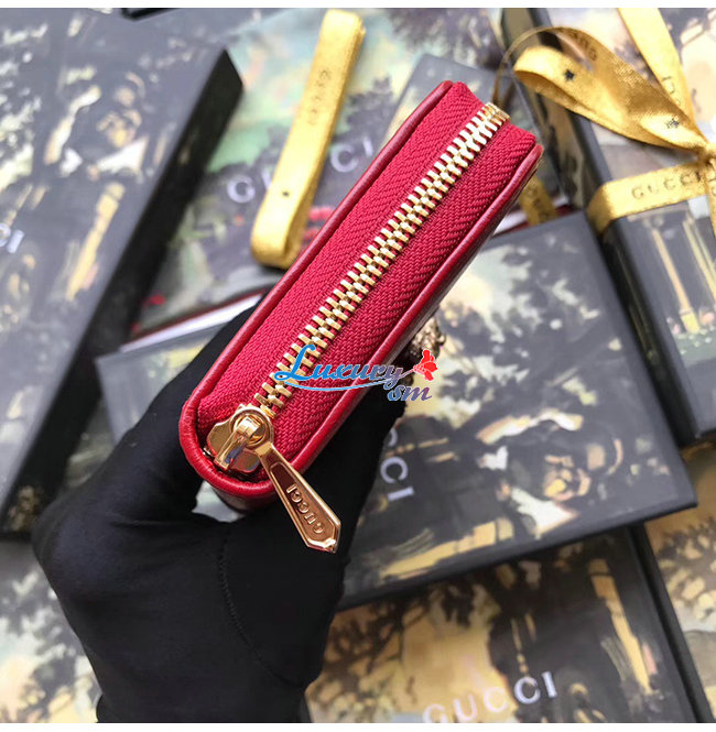 [스페셜오더]GUCCI-573791 8366 구찌 라자 레드 가죽 집 어라운 월릿