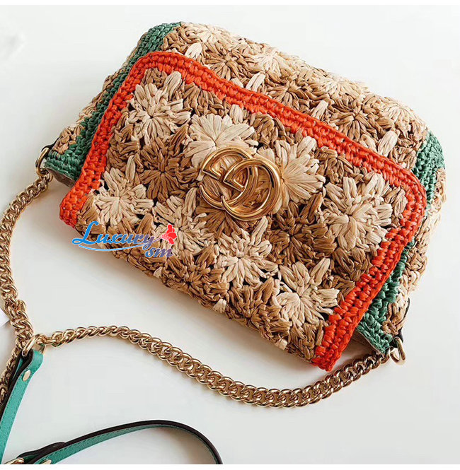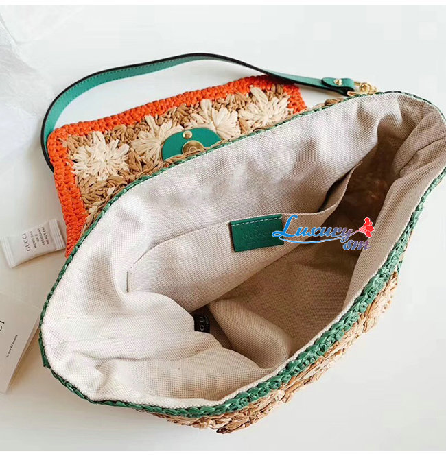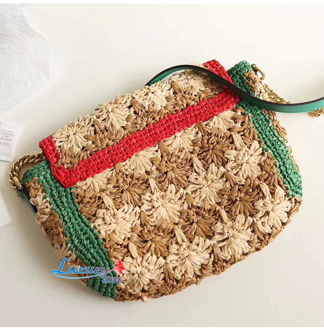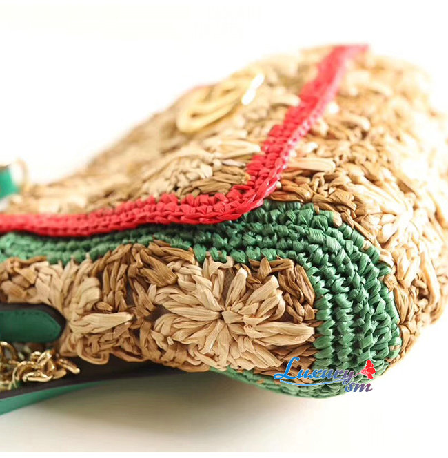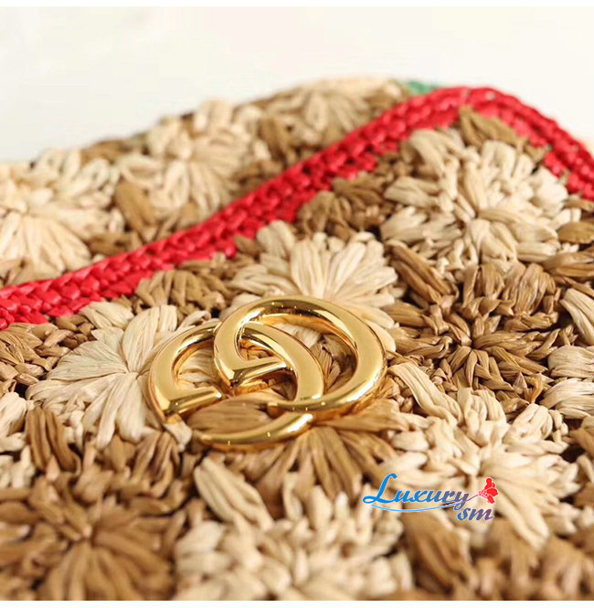 [스페셜오더]GUCCI-574433 8927 구찌 GG 마몽 라피아 그린/레드 디테일 스몰 숄더백