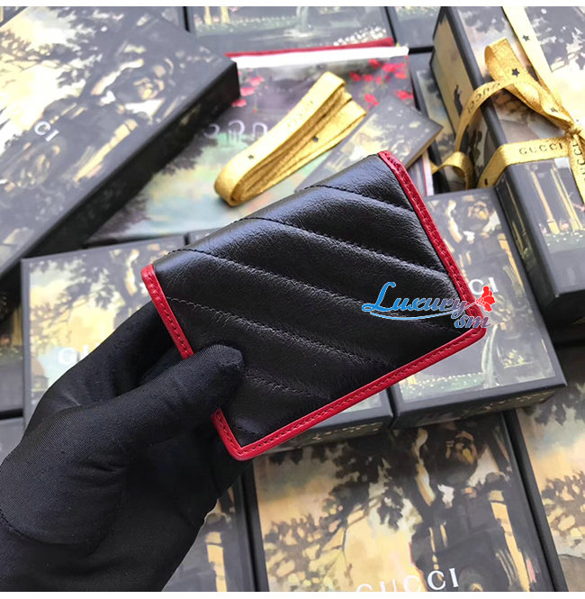 [스페셜오더]GUCCI-573811 8277 구찌 GG 마몽 블랙 사선형 마틀라세 가죽 카드 케이스