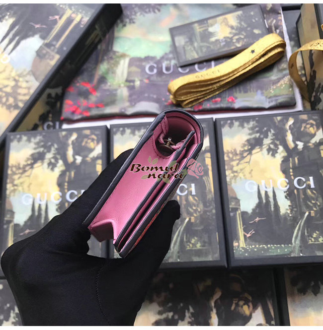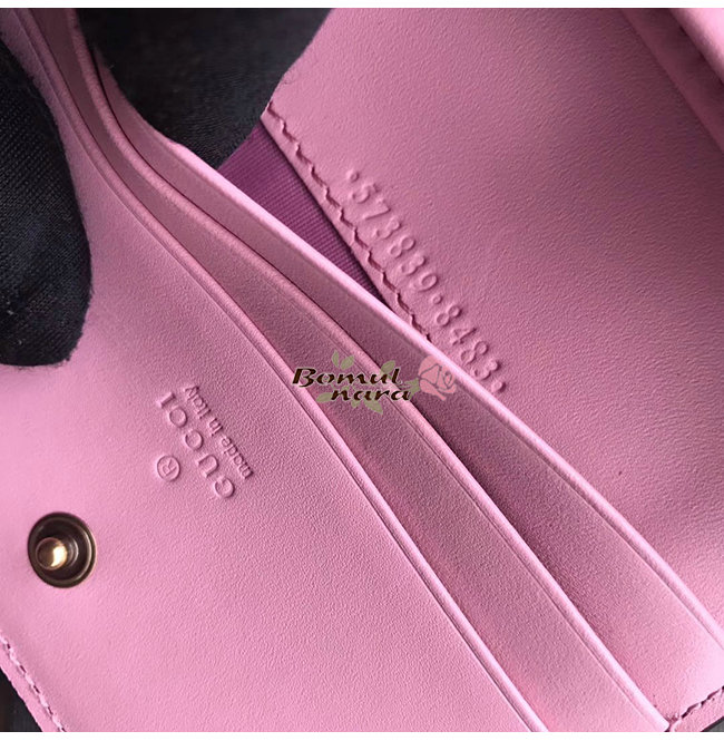 구찌 스트로베리 프린트 라이트 핑크 가죽 디테일 무아레