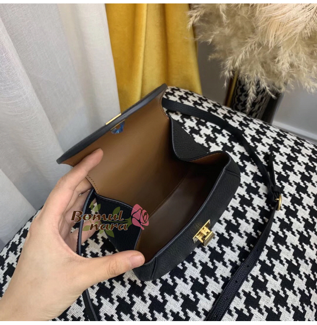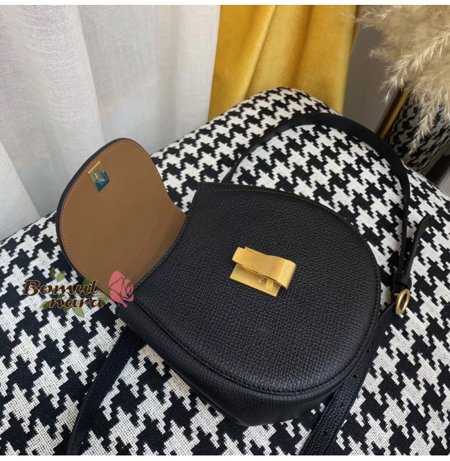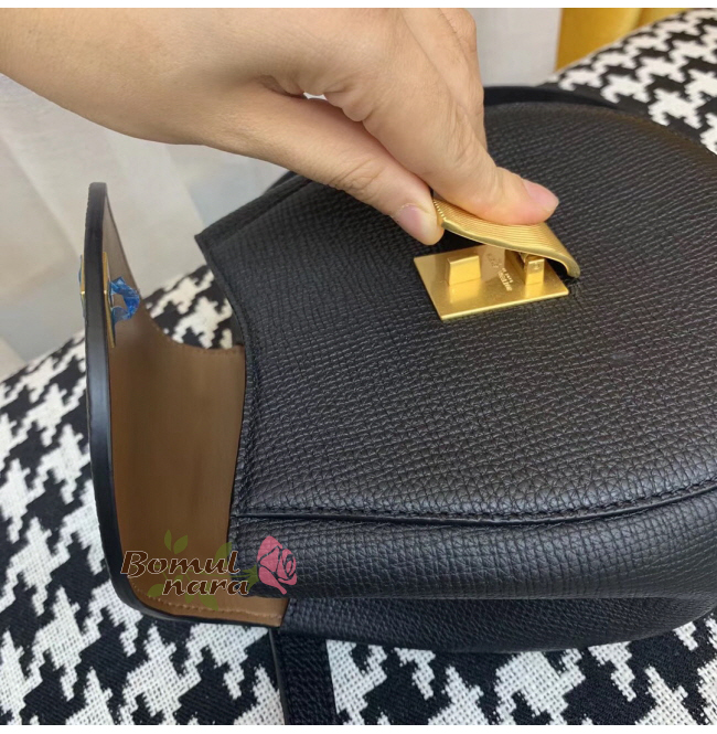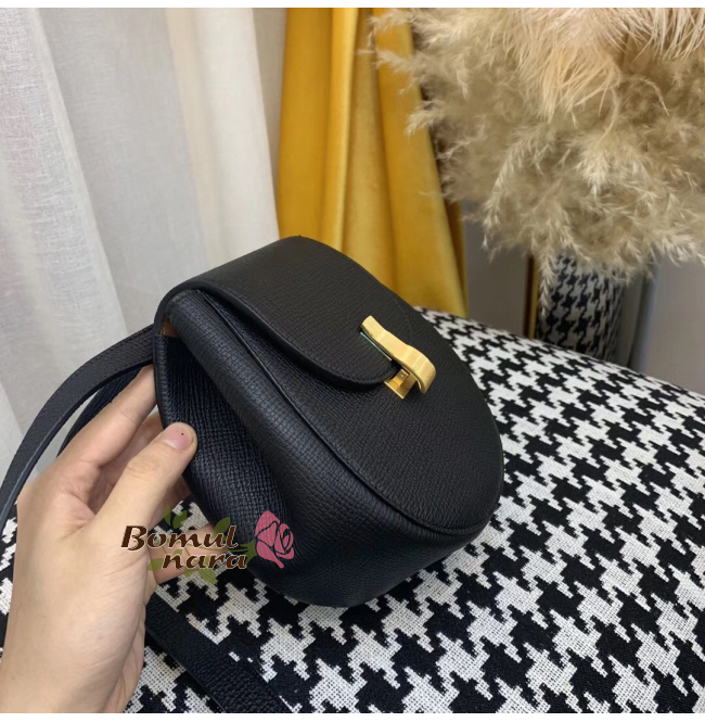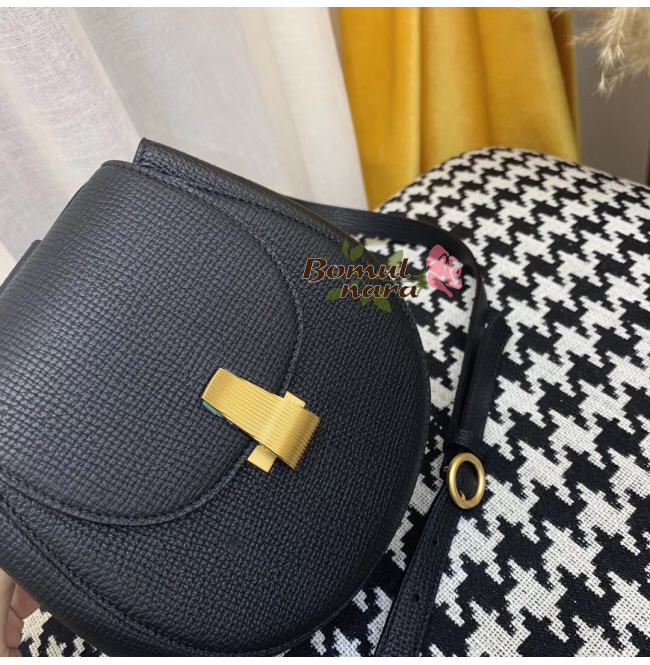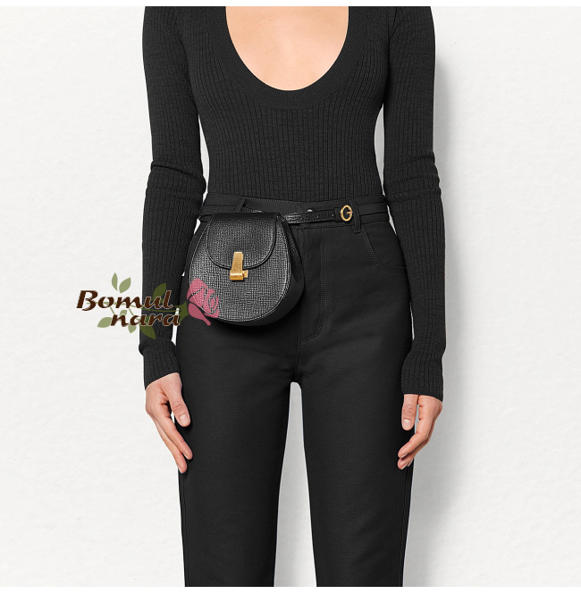 인그레이빙 잠금 장치가 장식된 둥근 형태의 벨트 백