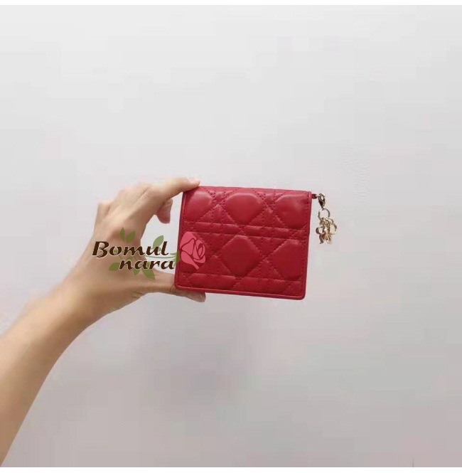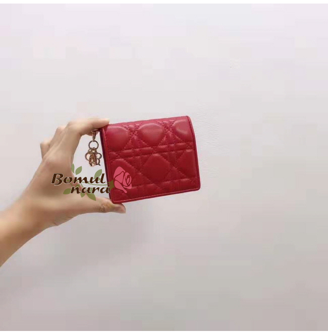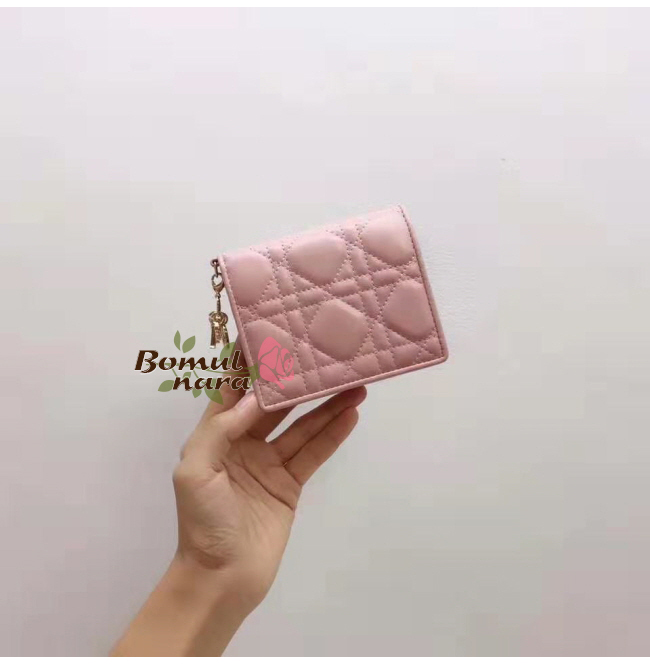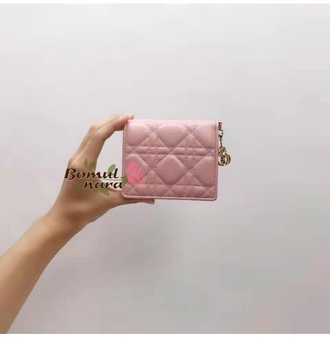 DIOR-S0178O 디올 까나쥬 램스킨 Lady Dior 미니 반지갑 (4컬러)