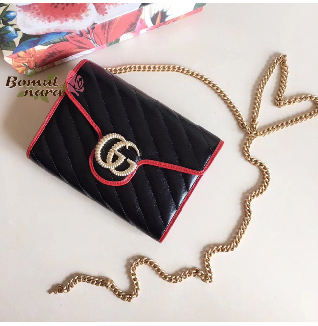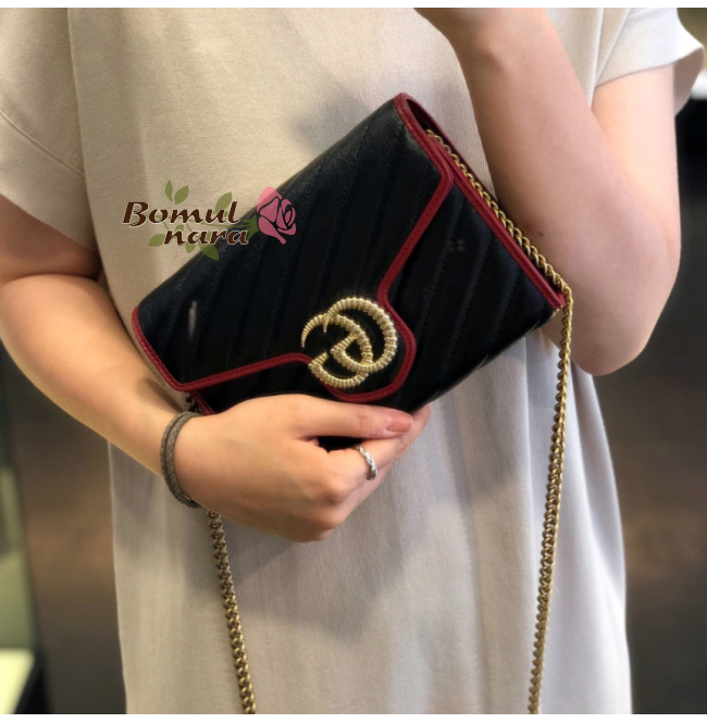 [스페셜오더]GUCCI-573807 8277 구찌 블랙 GG 마몽 체인 숄더 지갑