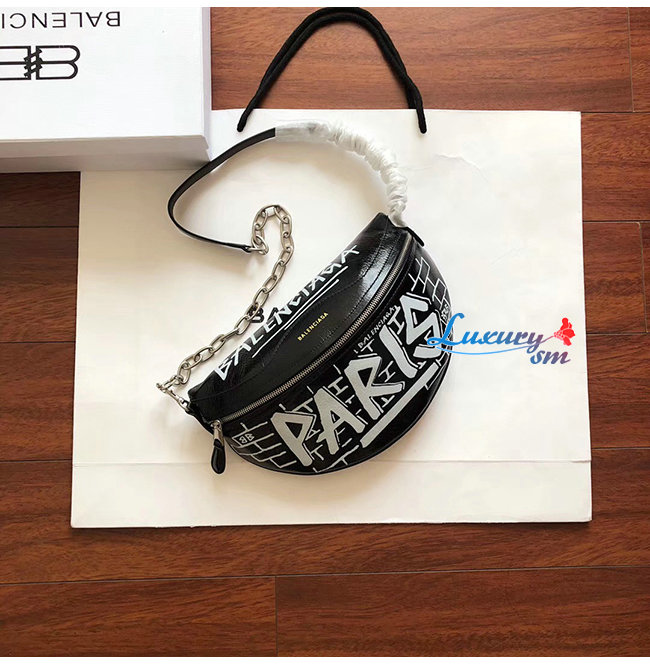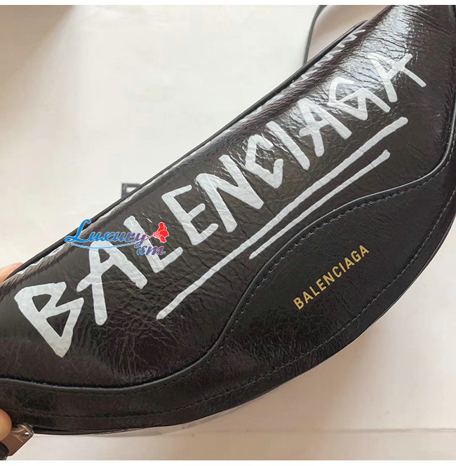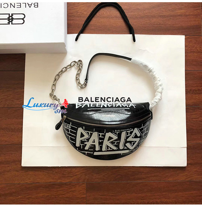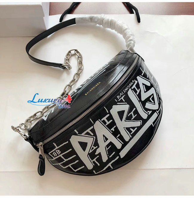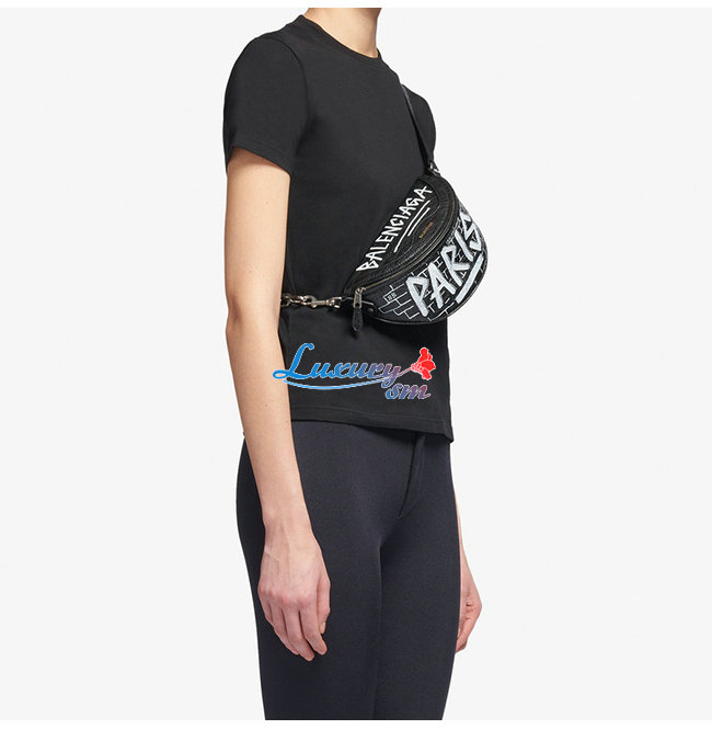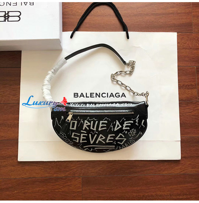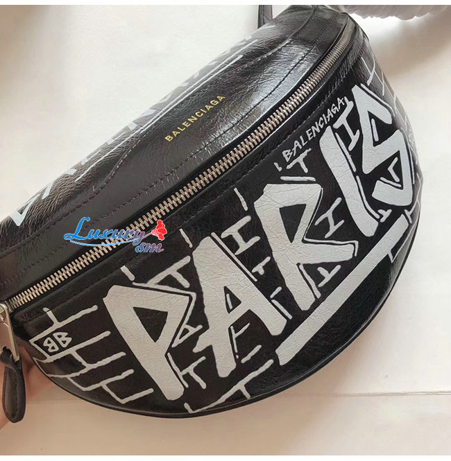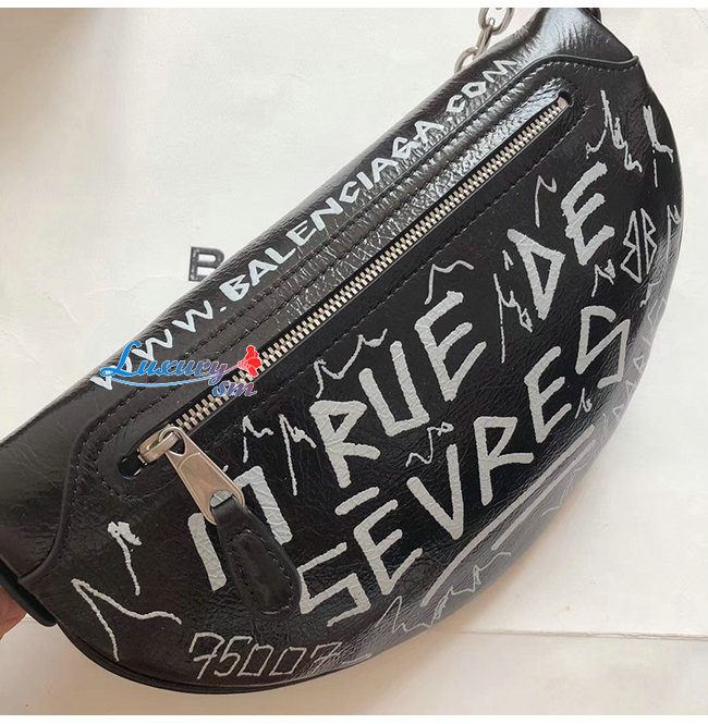 [스페셜오더]BALENCIAGA-565510 발렌시아가 블랙 램스킨 그래피티 수베니어 벨트팩 XXS