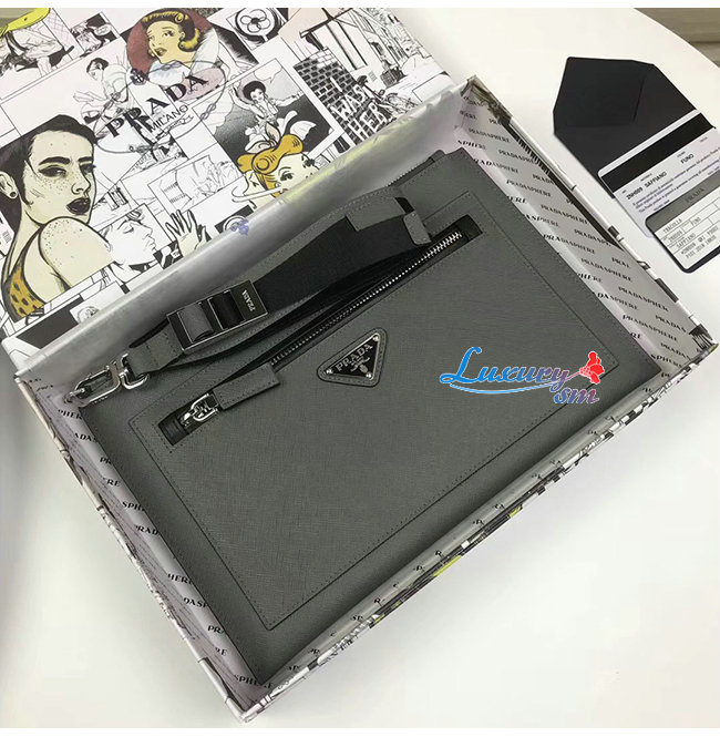 [스페셜오더]PRADA-2NH009 프라다 마블 그레이 사피아노 가죽 파우치