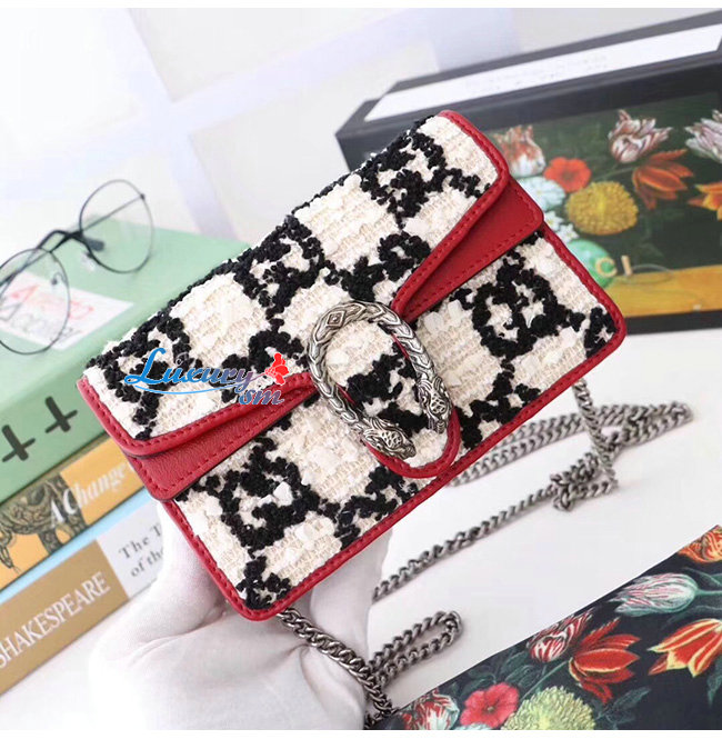 [스페셜오더]GUCCI-476432 1164 구찌 디오니서스 블랙/화이트 GG 트위드 수퍼 미니백