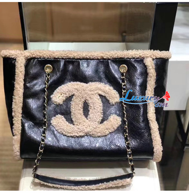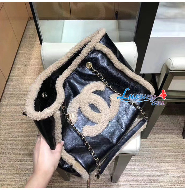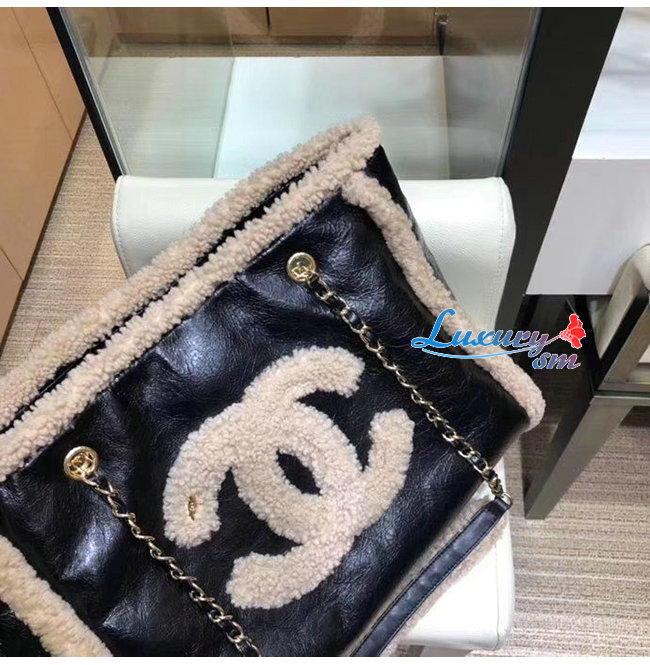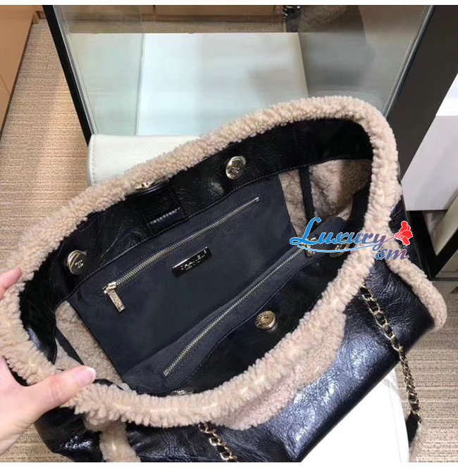 [스페셜오더]CHANEL-AS1167 샤넬 블랙/베이지 샤이니 크럼플드 쉽스킨 시어링 쉽스킨 쇼핑백