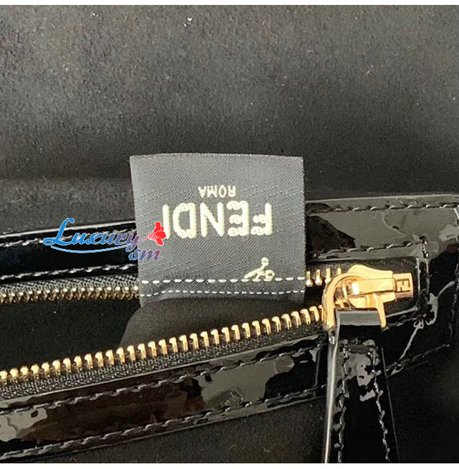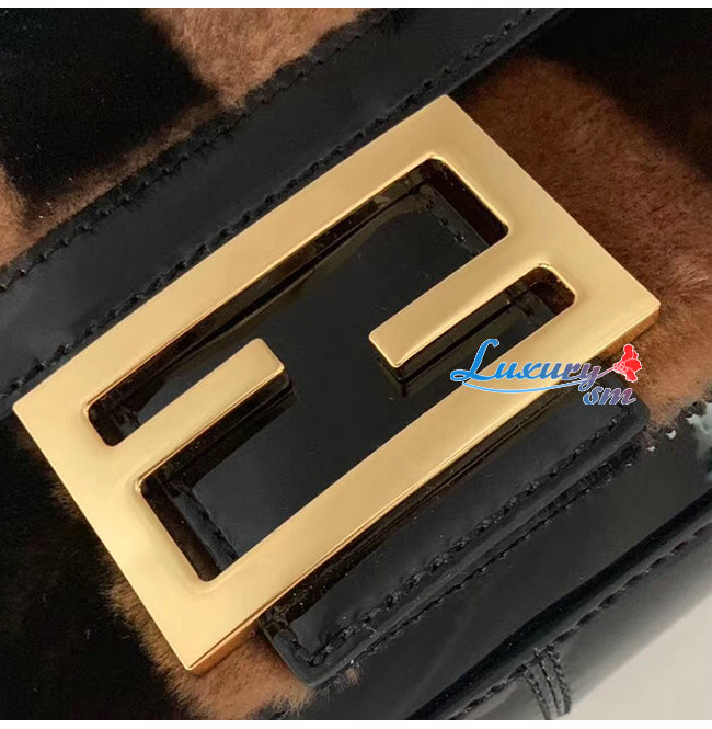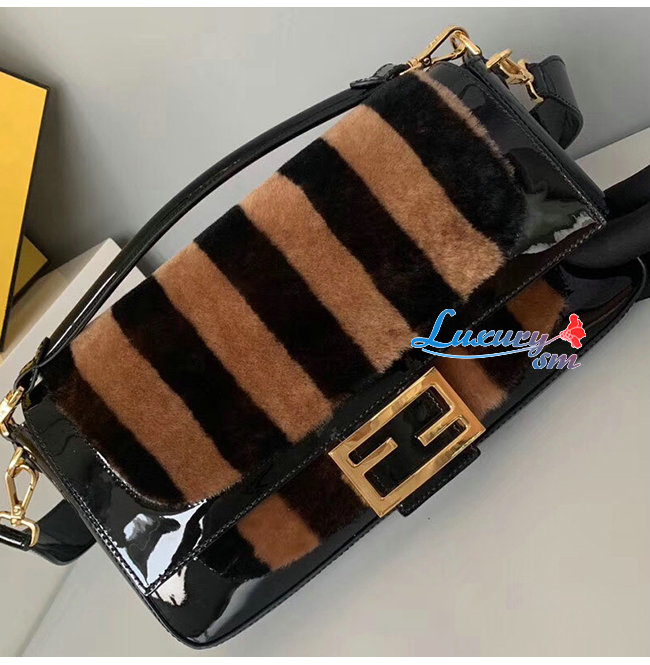 [스페셜오더]FENDI-8BR771 펜디 랙 페이턴트 가죽 브라운/블랙 페퀸 스트라이프 양가죽 라지 바게트