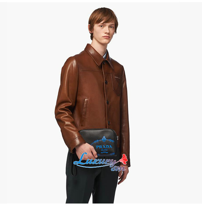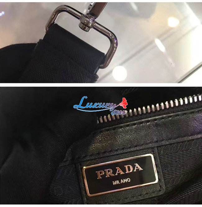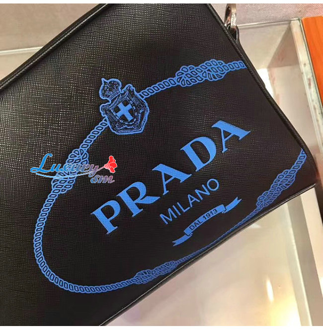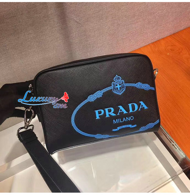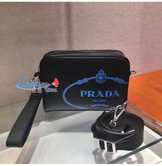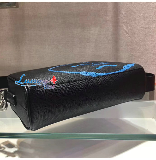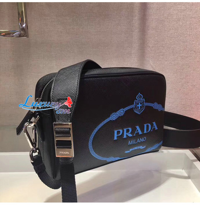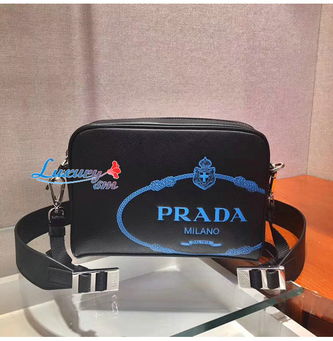 [스페셜오더]PRADA-2VH063 프라다 블랙 사피아노 가죽 스크린 프린트 로고 밴돌리어백