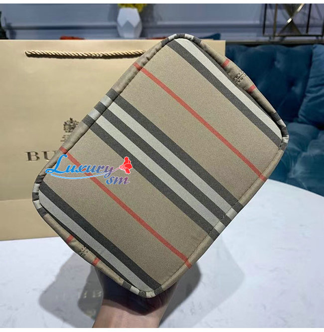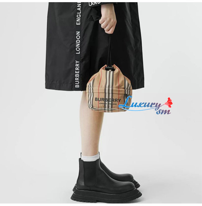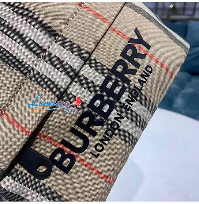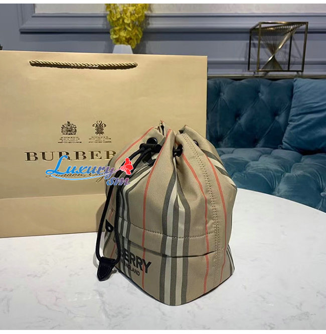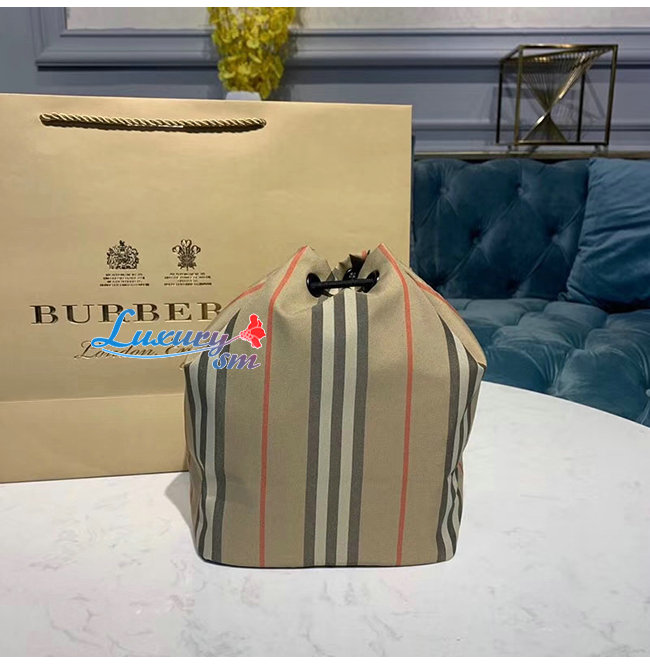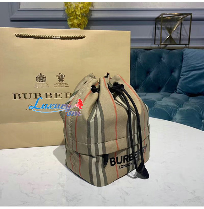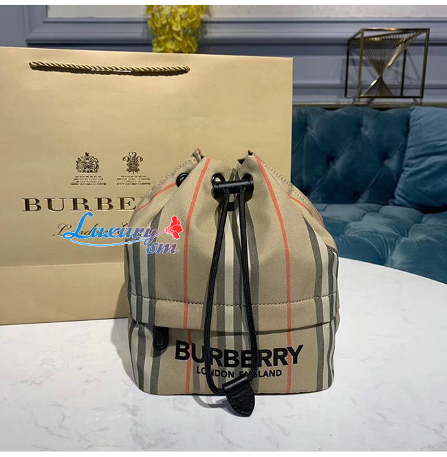 [스페셜오더]BURBERRY-80150511 버버리 로고 프린트 아이콘 스트라이프 나일론 드로스트링 파우치