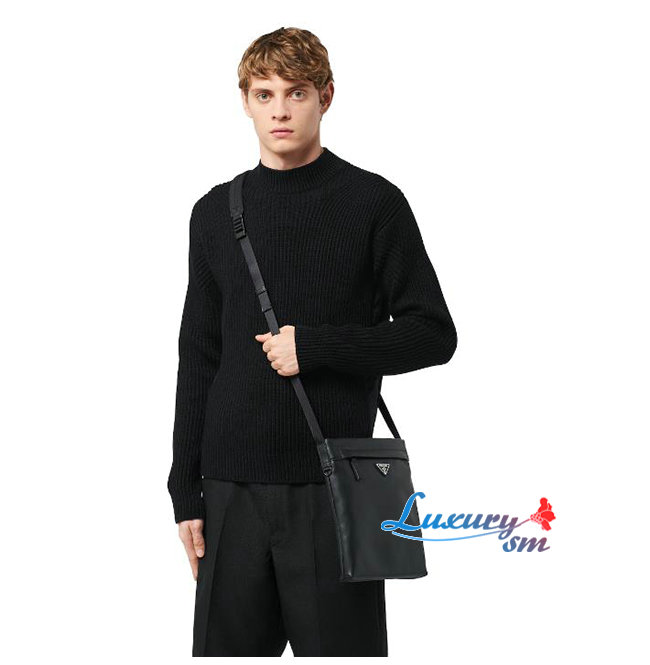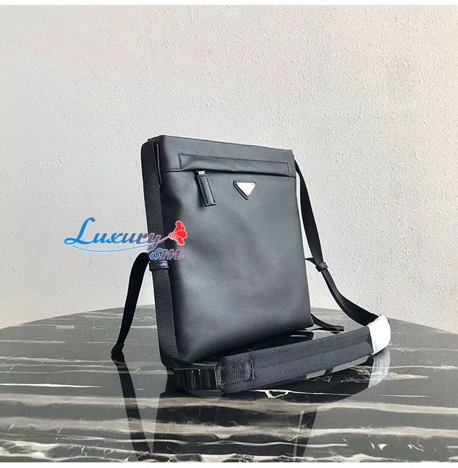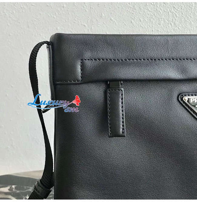 [스페셜오더]PRADA-2VH055 프라다 블랙 송아지 가죽 외부 트라이앵글 로고 숄더백