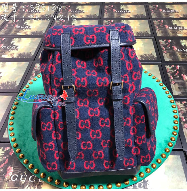 [스페셜오더]GUCCI-598184 8468 구찌 블루/레드 GG 울 스몰 백팩