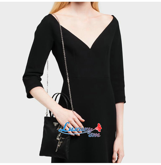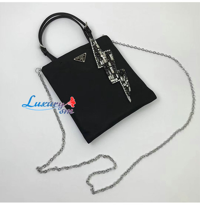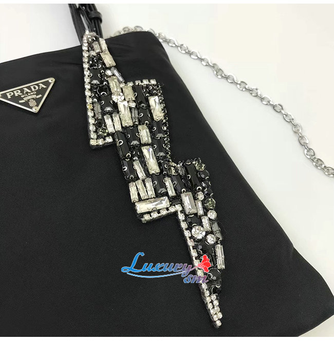 [스페셜오더]PRADA-1BA253 프라다 블랙 나일론 라이트닝 볼트 자수 모티프 숄더백