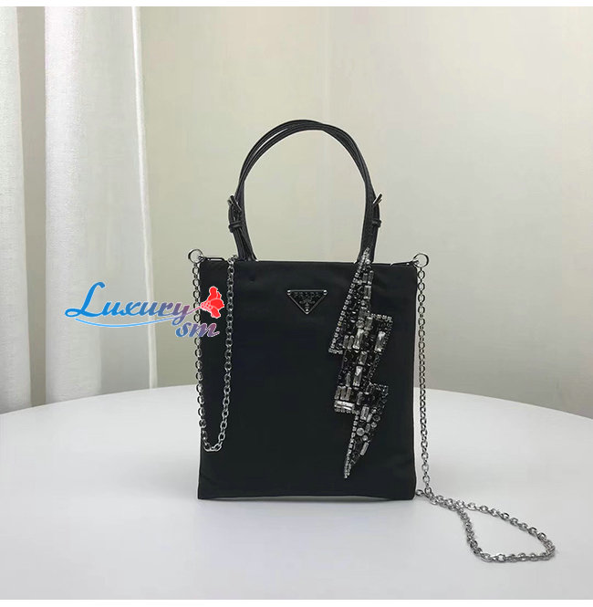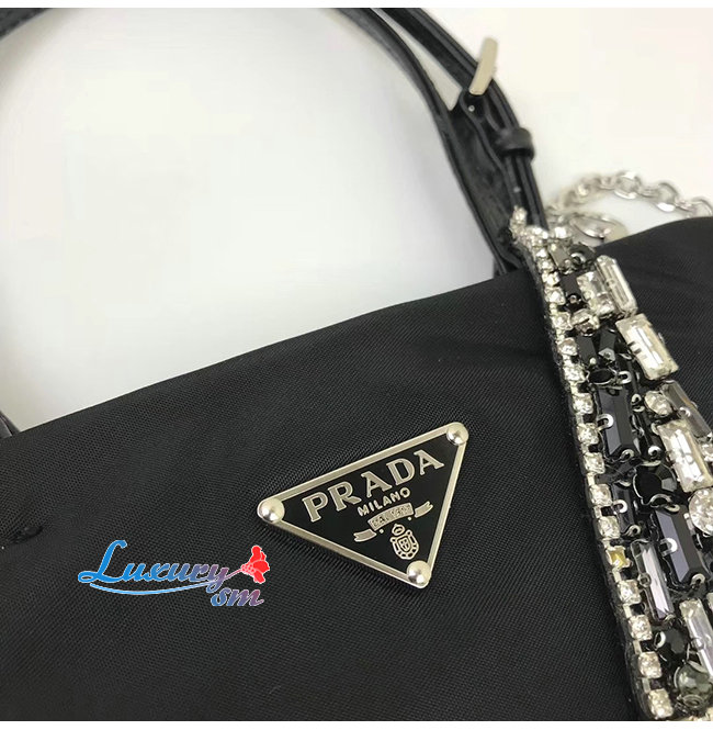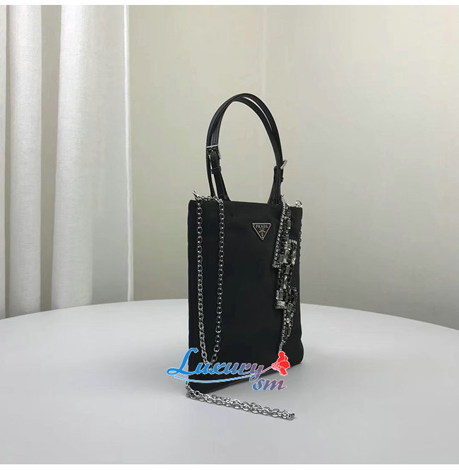 [스페셜오더]PRADA-1BA253 프라다 블랙 크리스탈 실크 새틴 미니 토트백