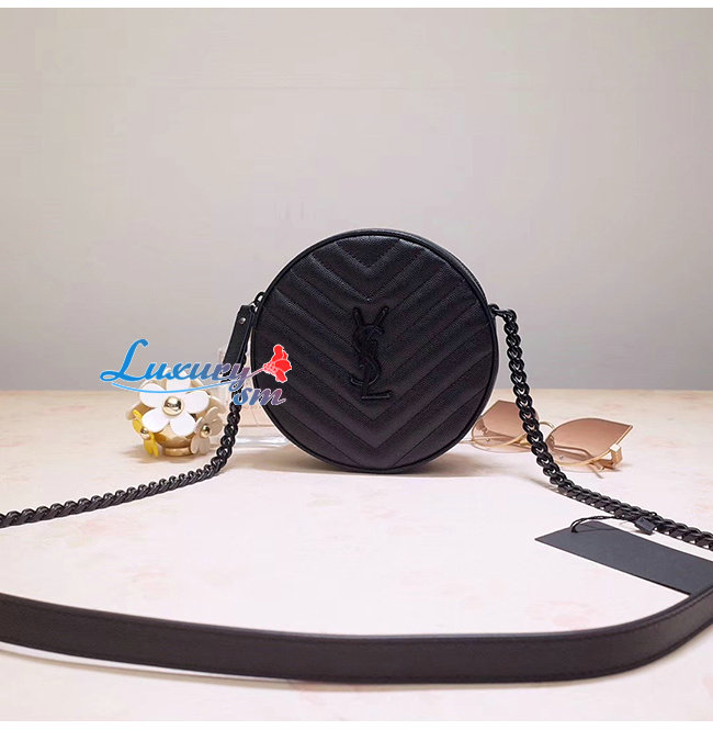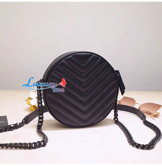 [스페셜오더]SAINT LAURENT-610436 생 로랑 블랙 쉐브론 퀼티드 송아지 가죽 라운드 카메라백