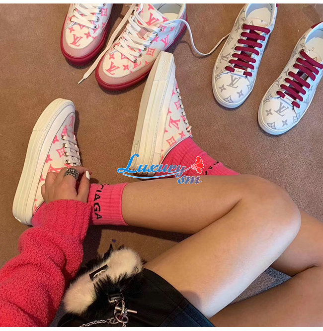 LOUIS VUITTON-1A65TE 루이비통 로즈 팝 모노그램 프린트 텍스타일 스텔라 스니커즈
