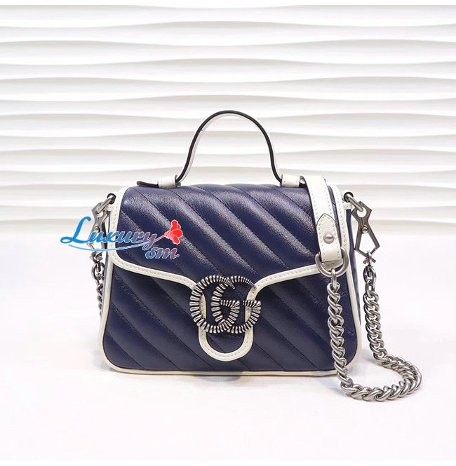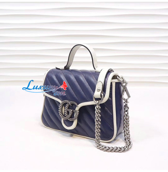 [스페셜오더]GUCCI-583571 4186 구찌 GG 마몽 블루 마틀라세 미니 탑 핸들백