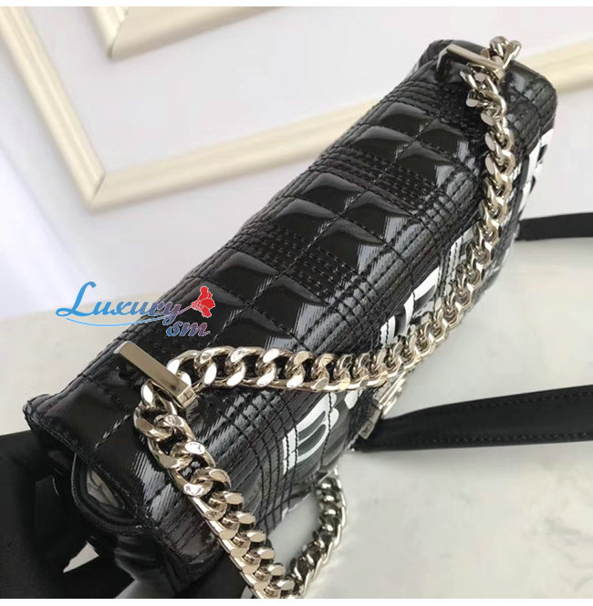 [스페셜오더]BURBERRY-80216191 버버리 블랙 스몰 호스페리 프린트 퀼팅 은장 롤라백
