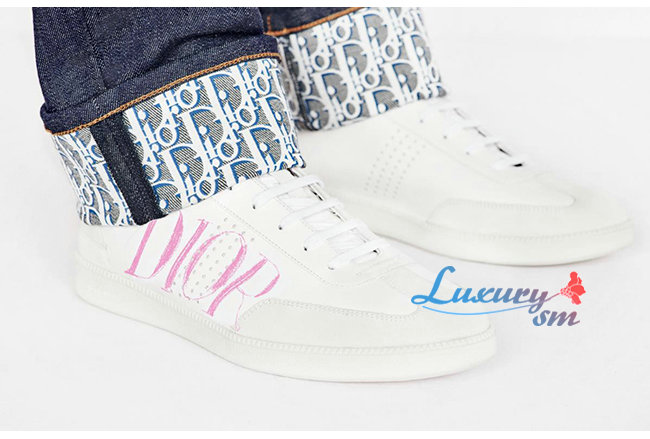 DIOR-3SN225 디올 화이트 DIOR & 알렉스 폭스턴 프린트 송아지 가죽 B01 스니커즈