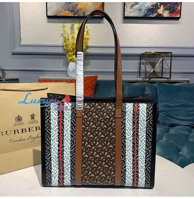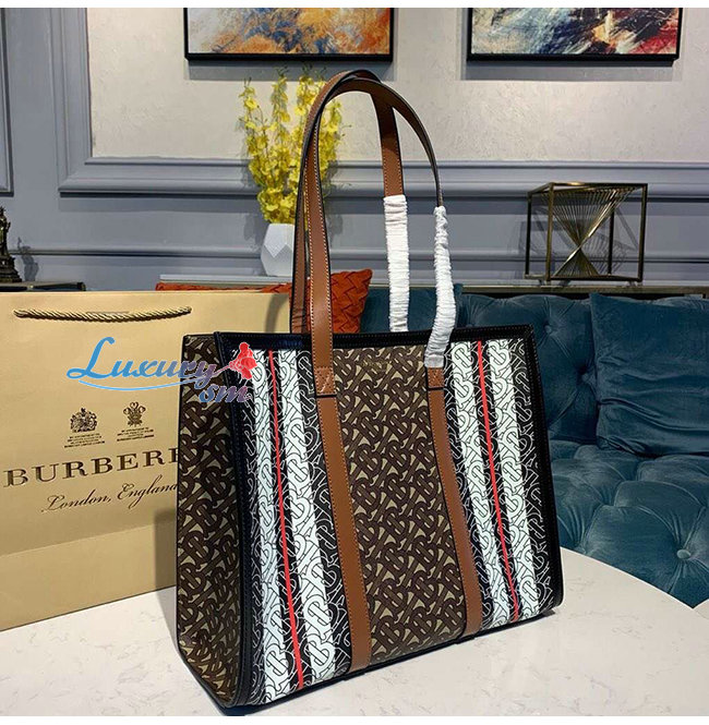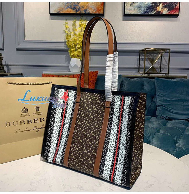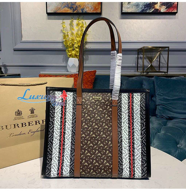 [스페셜오더]BURBERRY-80214881 버버리 모노그램 스트라이프 E-캔버스 토트백