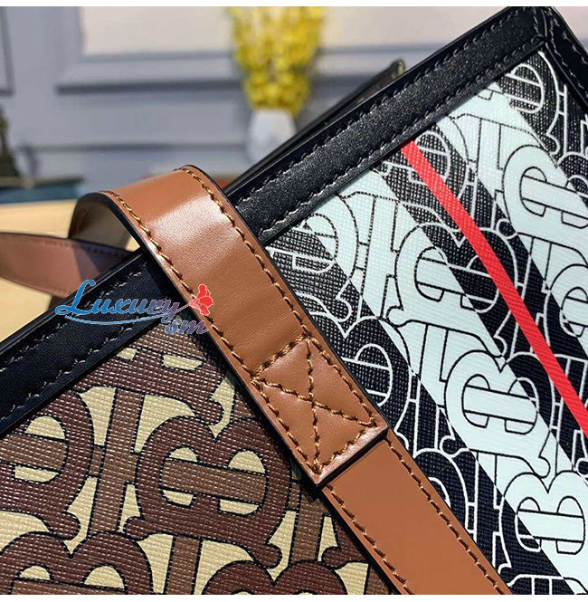 [스페셜오더]BURBERRY-80193831 버버리 스몰 모노그램 스트라이프 E-캔버스 토트백