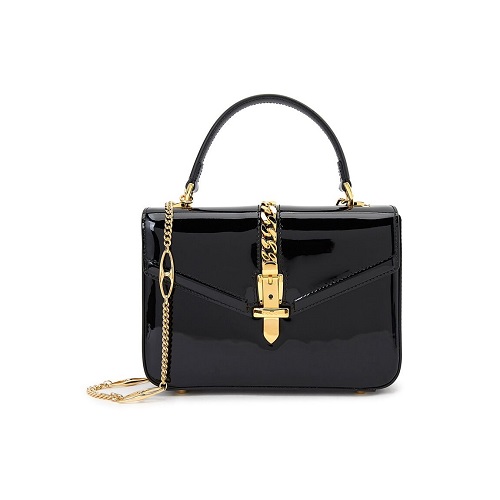 [스페셜오더]GUCCI-589479 1000 구찌 실비 1969 블랙 페이턴트 가죽 미니 탑 핸들백