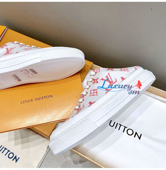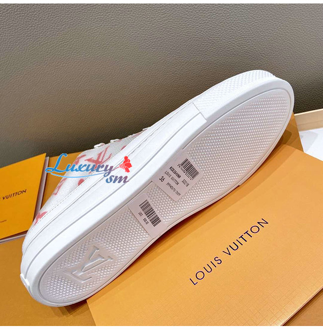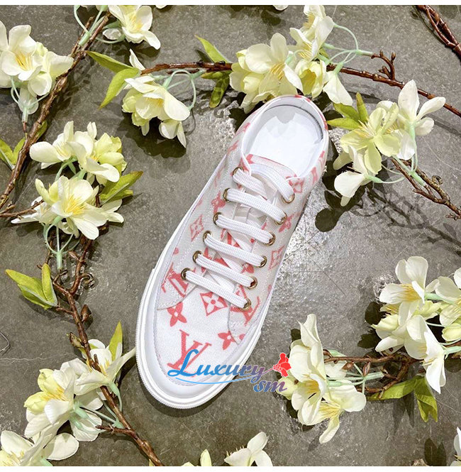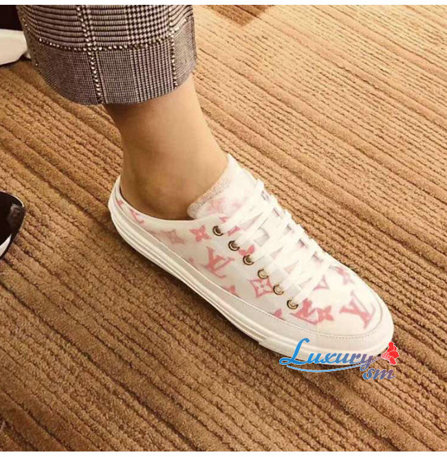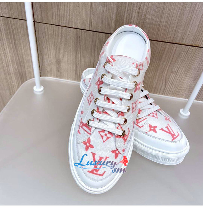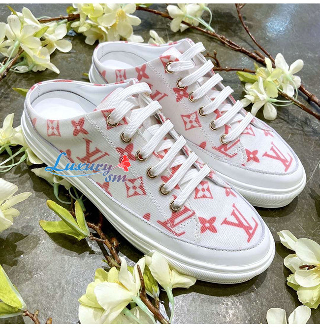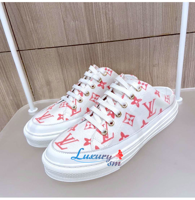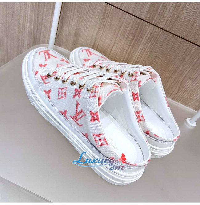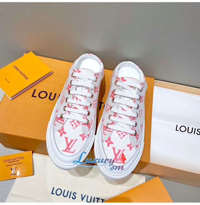 LOUIS VUITTON-1A65YB 루이비통 화이트/로즈 팝 모노그램 프린트 텍스타일 스텔라 오픈 백 스니커즈