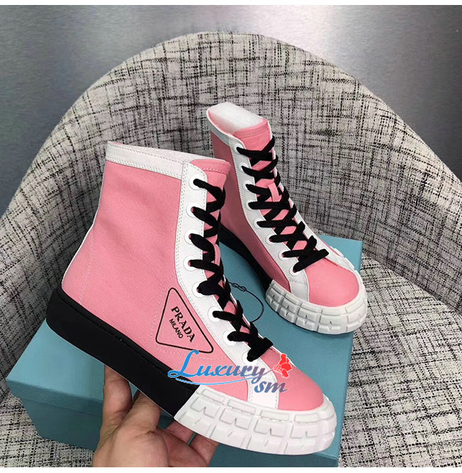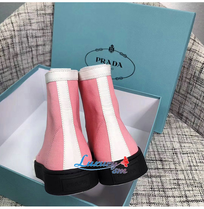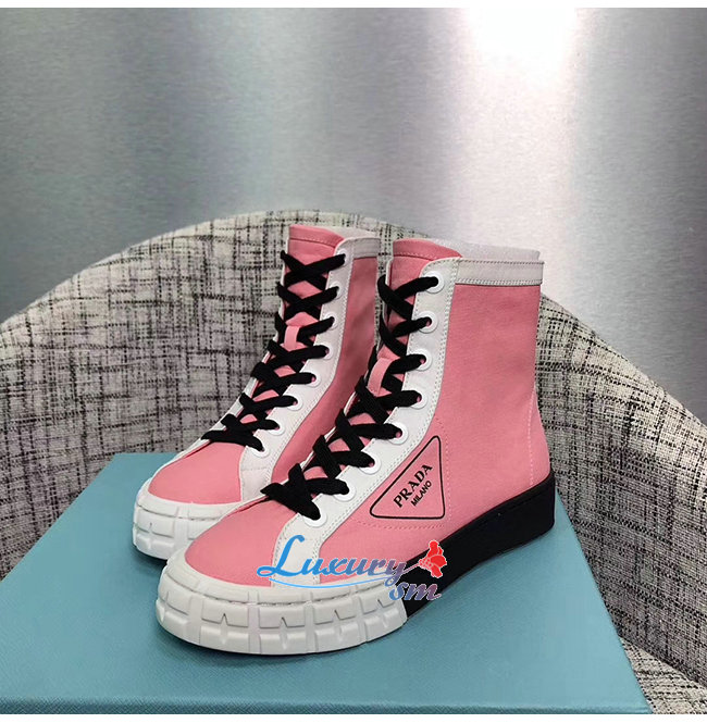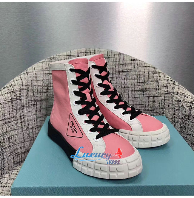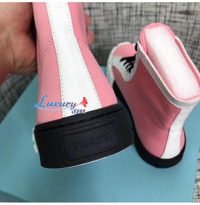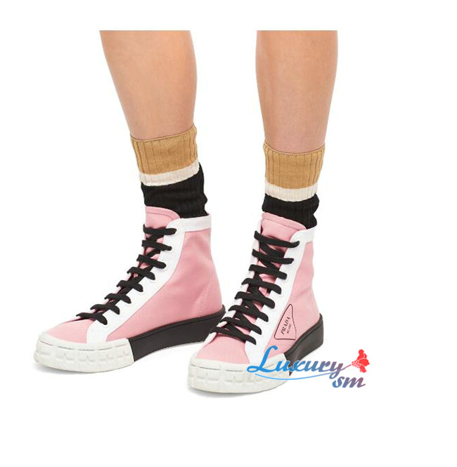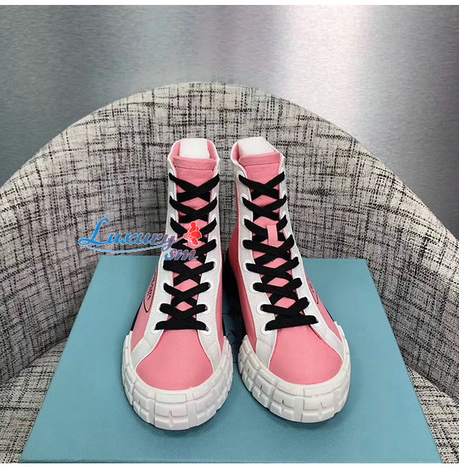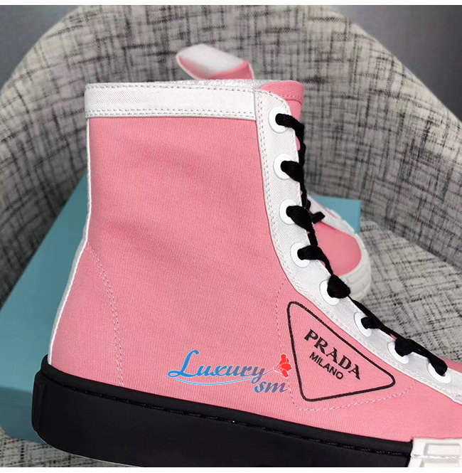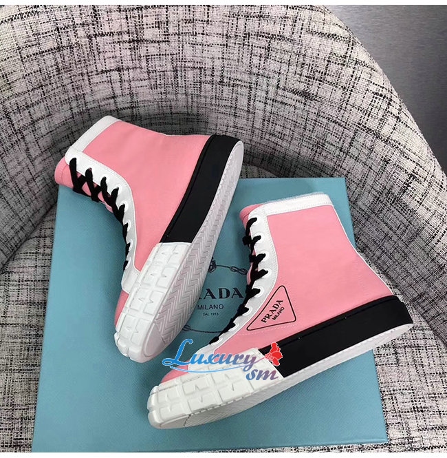 PRADA-1T941L 프라다 핑크 코튼 개버딘 하이탑 스니커즈
