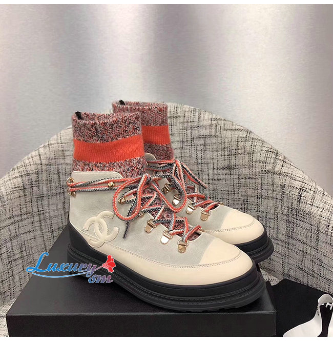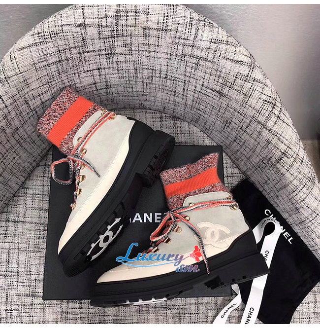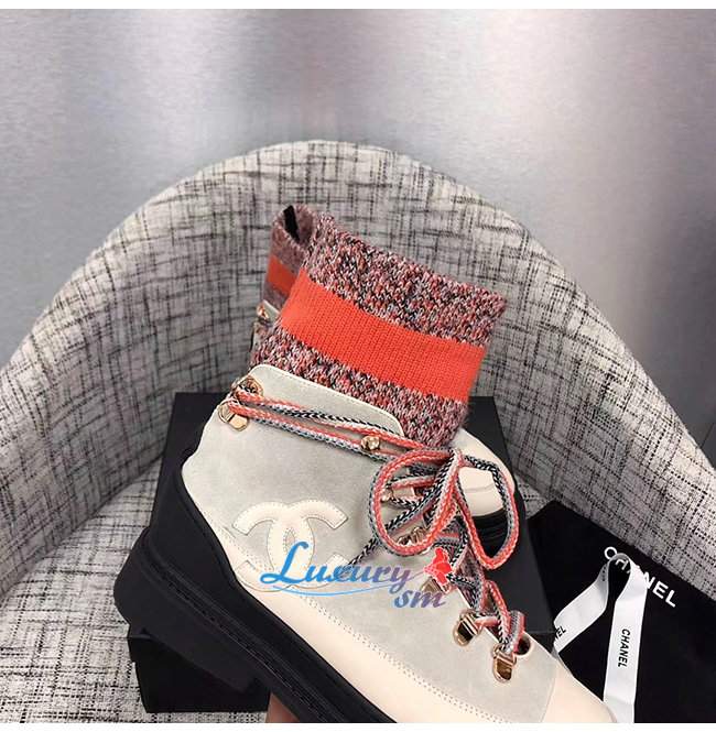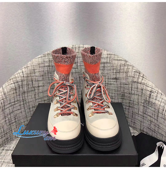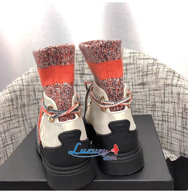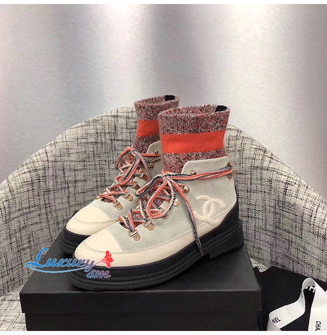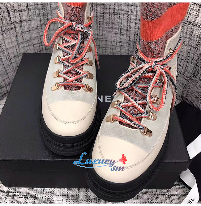 CHANEL-G35375 샤넬 아이보리/그레이/오렌지 카프스킨 믹스드 파이버 레이스업
