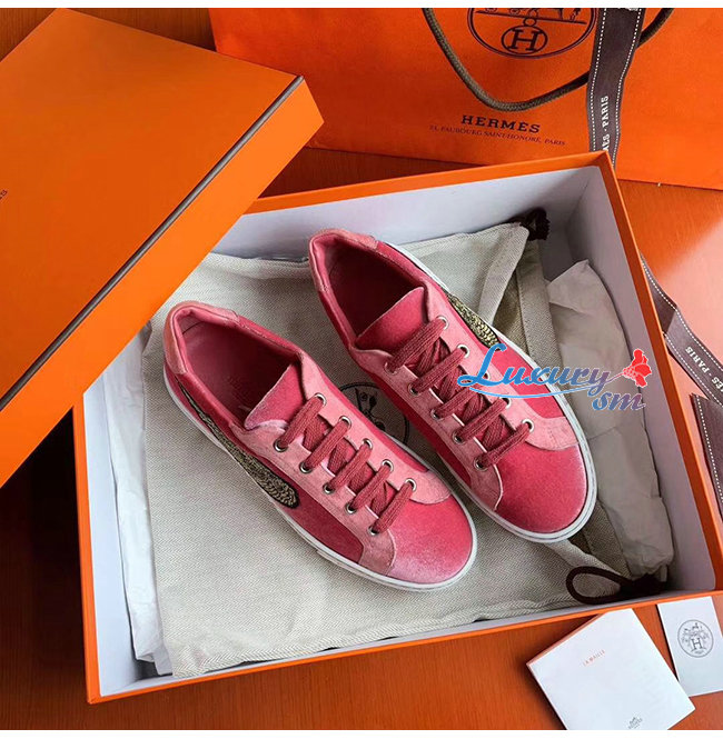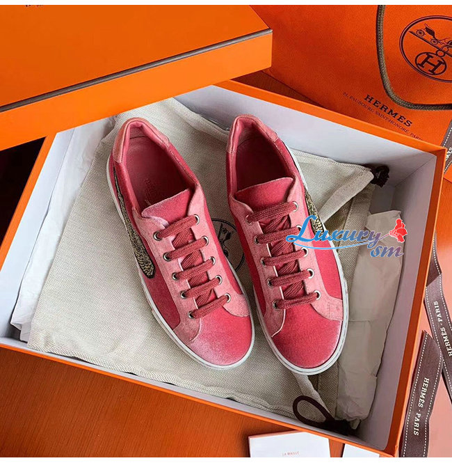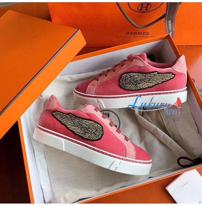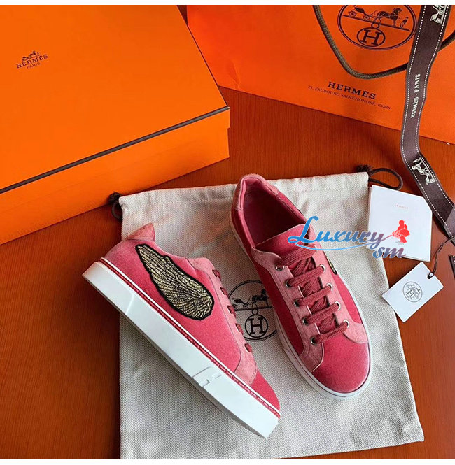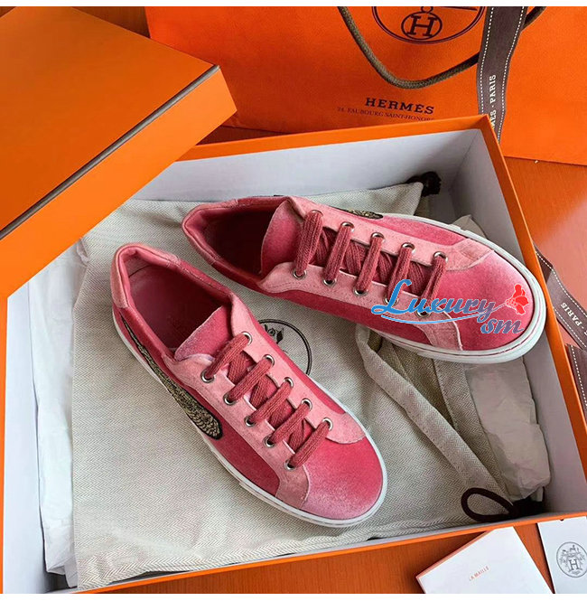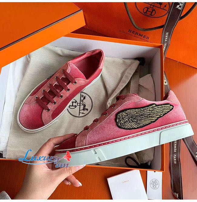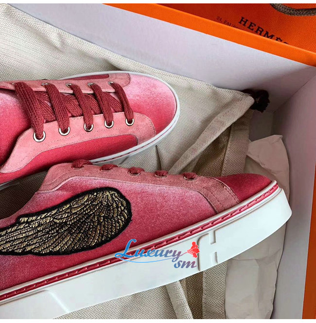 HERMES-H192114 에르메스 핑크 벨벳 윙 디테일 스니커즈