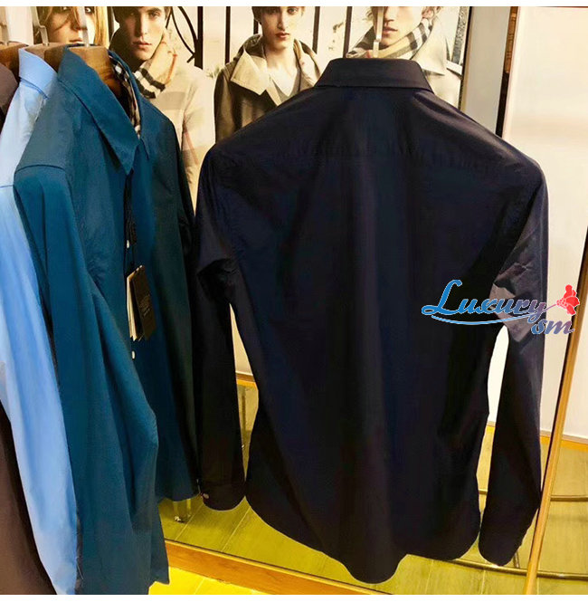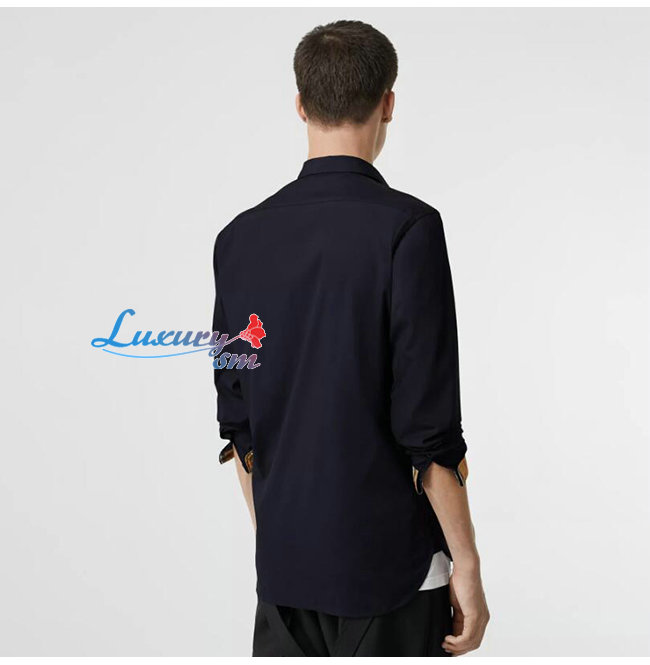 BURBERRY-80087051 버버리 네이비 코튼 스트레치 포플린 셔츠