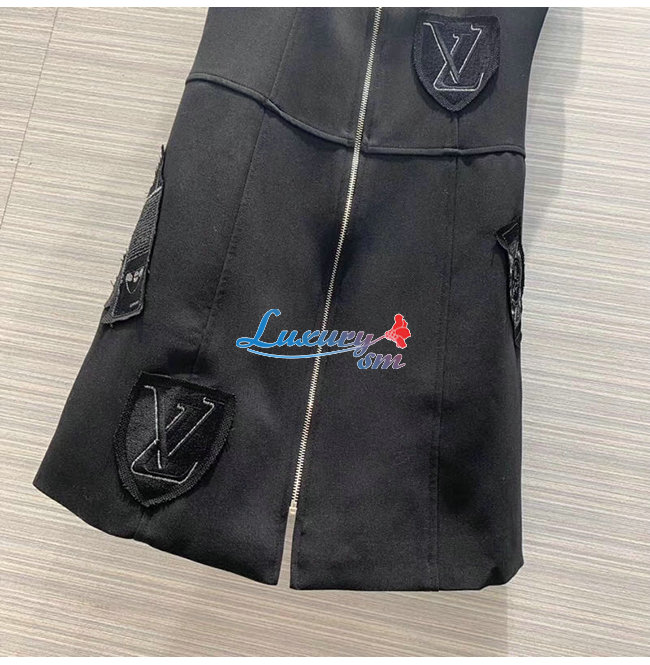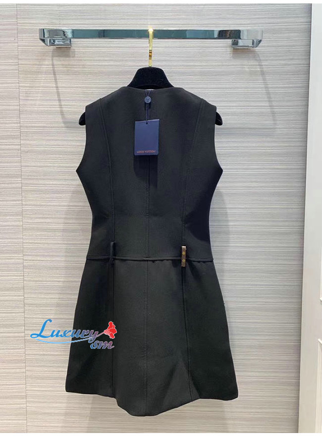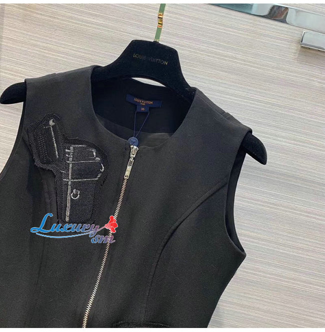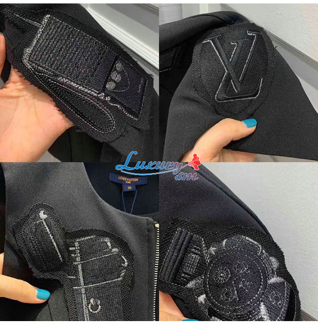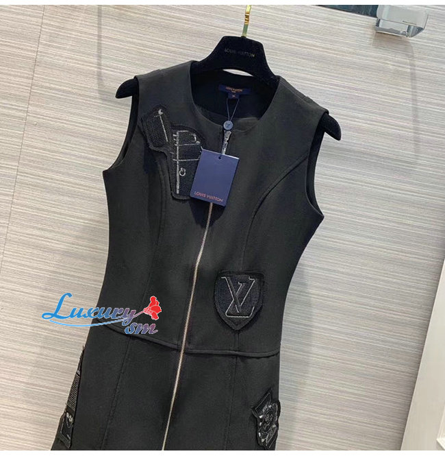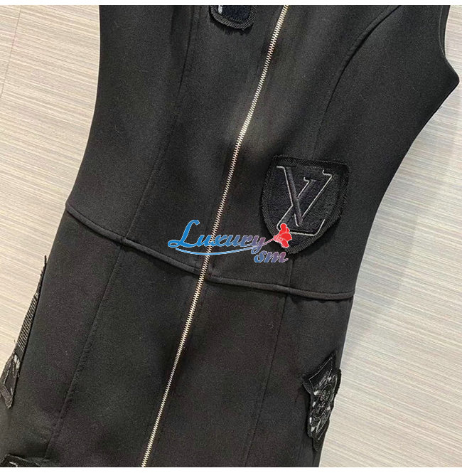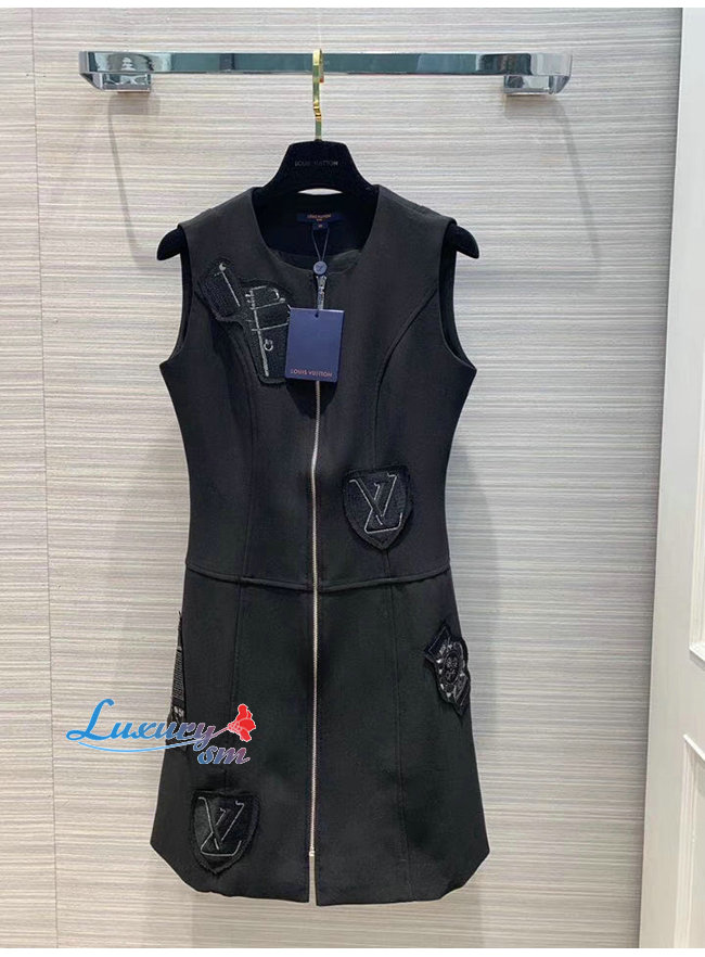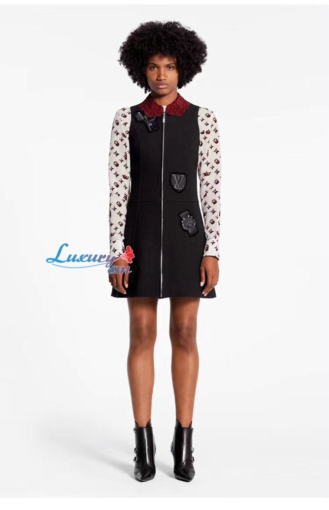 LOUIS VUITTON-1A5JOL 루이비통 블랙 엠브로이더드 패치 A-라인 드레스 위드